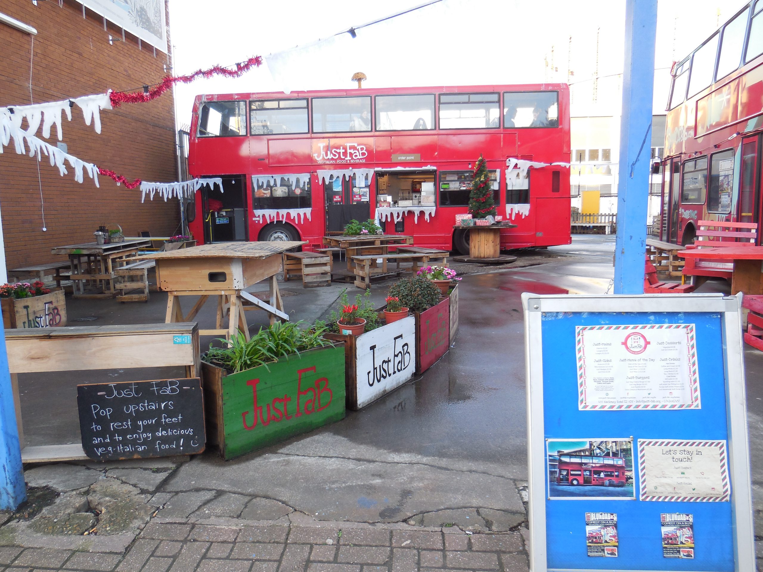 Cosa fanno un’americana, un inglese, un afroamericano e due italiane su uno dei tipici autobus a due piani londinesi, rigorosamente rosso, nel bel mezzo di Londra? Non stanno raggiungendo l’altra parte della città e neanche facendo un giro turistico. Stanno, invece, gustando delle ottime pietanze siciliane, rivisitate in chiave vegana, su quello che ormai è conosciuto da londinesi e turisti come Just fab, veg-italian street food and beverages.