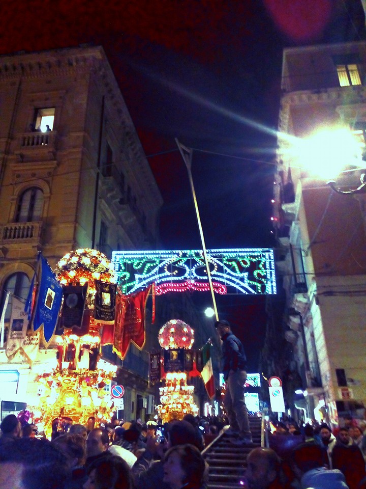 E per lui è proprio incrociare lo sguardo con Sant’Agata il momento più bello della festa: «Altro che bombe e dolcetti…». Ma non cambierebbe nulla dei festeggiamenti. Neanche i ritmi lenti del fercolo che, mentre le candelore sono già poggiate lungo la discesa per via Etnea, è fermo da circa un’ora allo stesso civico della salita di via Caronda: «È comprensibile che i devoti vogliano stare quanto più tempo possibile insieme alla nostra Agata». E ad aprire la processione, davanti alle candelore, è proprio lui a bordo dell’Apecar gialla sulla quale trasporta i suoi pesanti attrezzi da lavoro.