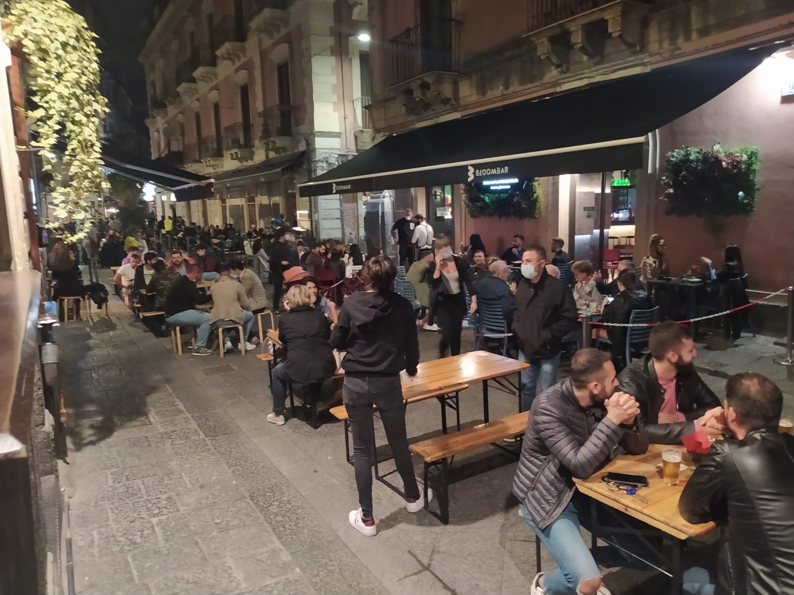 «Molto meglio adesso, prima non si poteva neanche camminare», commenta una giovane a MeridioNews. Per accedere alla via piena di locali, ci sono però delle regole da rispettare: mascherina alzata fino al naso e non si può fumare in transito perché ciò comporterebbe abbassare la mascherina. Regole, queste, che decadono nel momento in cui ci si siede al tavolo. «Ieri (venerdì per chi legge, ndr) sera abbiamo avuto qualche problema – racconta a MeridioNews un agente dell’Aeop (Associazione europea operatori di polizia) – perché c’è sempre qualcuno che esagera con l’alcol».