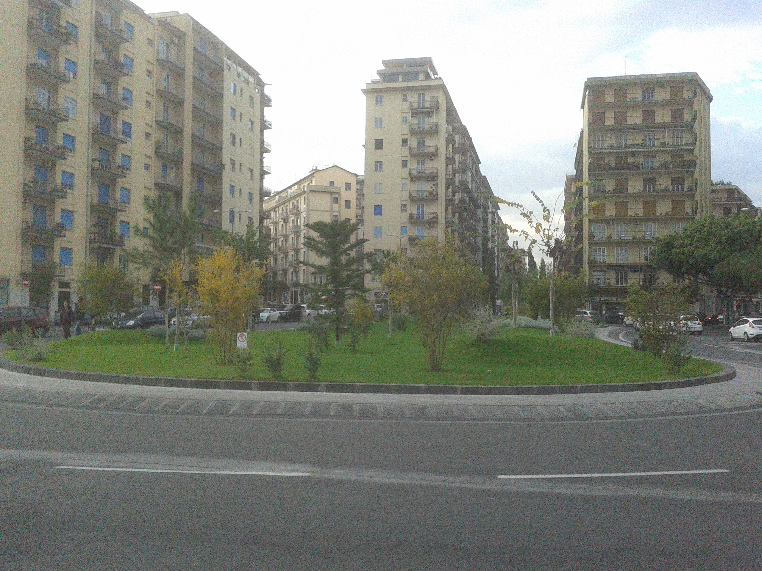 I marciapiedi sono stati rifatti nello stesso periodo di rifacimento della piazza-rotatoria e non sono sconnessi come accade altrove in città ma, al contrario della piazza centrale, non vengono spazzati regolarmente dagli addetti alle pulizie e gli impianti automatici per l’irrigazione delle aiuole non ricevono manutenzione. Nessuna luminaria, inoltre, per il periodo festivo e la normale illuminazione è flebile. Così, la sera, la zona è in penombra e diventa luogo di appuntamento per la prostituzione.