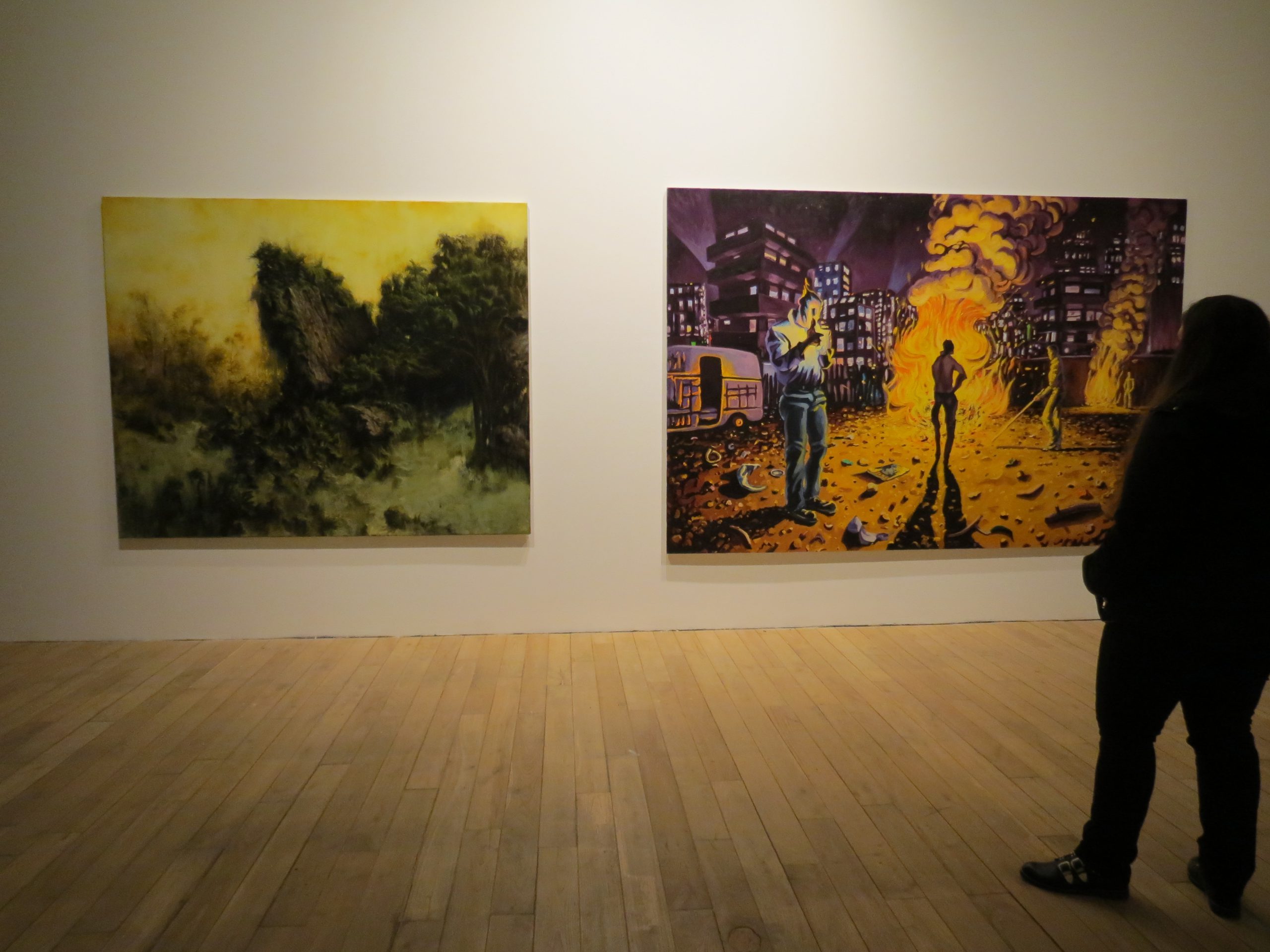 «Costituitasi in un momento in cui la fase del ritorno alla pittura declinava in favore di un diverso orizzonte di proposte concettuali e di nuovi media – spiega anche il curatore Troisi – la Scuola di Palermo ha individuato il punto di convergenza e irradiazione dei quattro percorsi nell’idea stessa della pittura, della sua materia e della sua stratificata memoria, come luogo di esplorazione del sentimento contemporaneo». Un mosaico frutto del gioco di dialoghi, confronti e contrappunti: l’universo futuribile e metamorfico di Di Piazza, che tanto ricorda Bosch, le periferie e i realistici frame quotidiani di Di Marco, poeta della luce piena, gli inquieti e fantastici scenari urbani e paesaggistici di De Grandi e la divagante affabulazione figurale imbastita da Bazan.