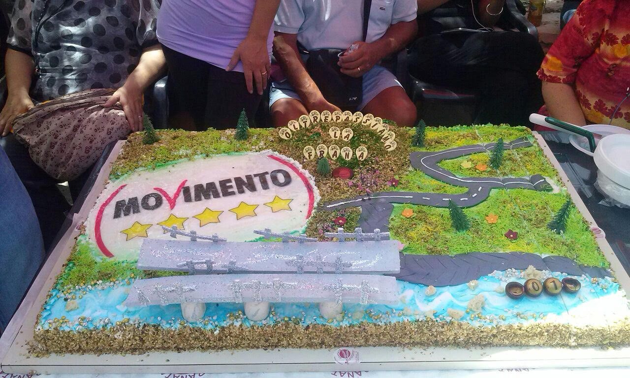 Si respira un clima di festa all’imbocco della strada, nonostante i quasi 40 gradi. Frittelle e formaggio venduti a offerta libera. E i deputati del Movimento cinque stelle che, chitarra alla mano, intonano una versione corretta per l’occasione di Strada facendo, di Baglioni. «Dobbiamo riportare la politica nelle piazze, nelle strade e nelle spiagge per risolvere i problemi insieme ai cittadini. Loro le cose le fanno poi; noi quel modo di fare politica lo abbiamo messo in soffitta e le cose le facciamo ora».