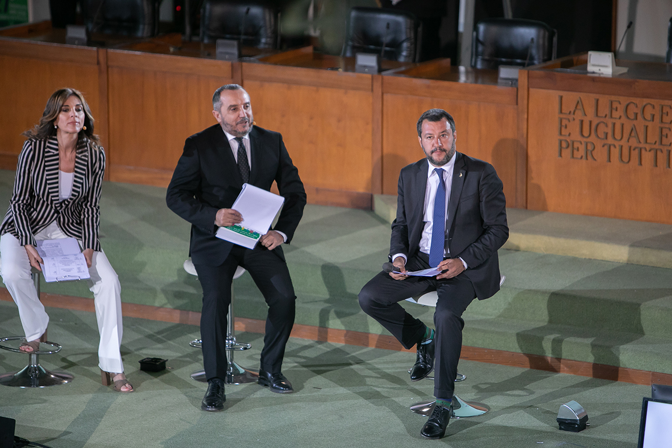 Alla cerimonia è presente anche il ministro della Giustizia Alfonso Bonafede. Che, sollecitato dai numerosi cronisti presenti, ha rilasciato una battuta sulle assenze in aula bunker. «Non ho intenzione di commentare scelte e decisioni che sono di altri – ha detto – Siamo qui e siamo qui non soltanto per noi ma per le nuove generazioni che rappresentano il futuro di questo Paese». Paradossalmente, l’unico che non ha commentato le defezioni istituzionali in aula è colui che con la sua presenza le ha create, ovvero Salvini. «La nuova sede dell’Agenzia dei beni confiscati l’ho inaugurata a casa mia, a Milano – ha detto – perché non ci sono più confini. Sia chiaro agli italiani che non ci sono più alcune regioni mafiose e altre esenti. La mafia ce l’abbiamo sotto casa. Questi sono dappertutto e dobbiamo beccarli dappertutto. La mafia ormai è ovunque, non appartiene più solo a pochi luoghi, e bisogna saper denunciare perché chi tace è complice. Ogni giorno che il buon Dio manda in terra prego per gli uomini delle scorte, che hanno nomi meno noti, che non sono ricordati, ma che hanno scelto un mestiere difficile. Oggi ci sono circa 2.200 poliziotti e finanzieri che rischiano la vita per proteggere persone a rischio, li ricordiamo e ringraziamo. Penso che chi ha ucciso quelle persone abbia tolto la vita e abbia provocato un dolore immenso ai familiari ma abbia svegliato il popolo italiano. Quel sacrificio è valso il risveglio di un popolo, nulla è stato più come prima».