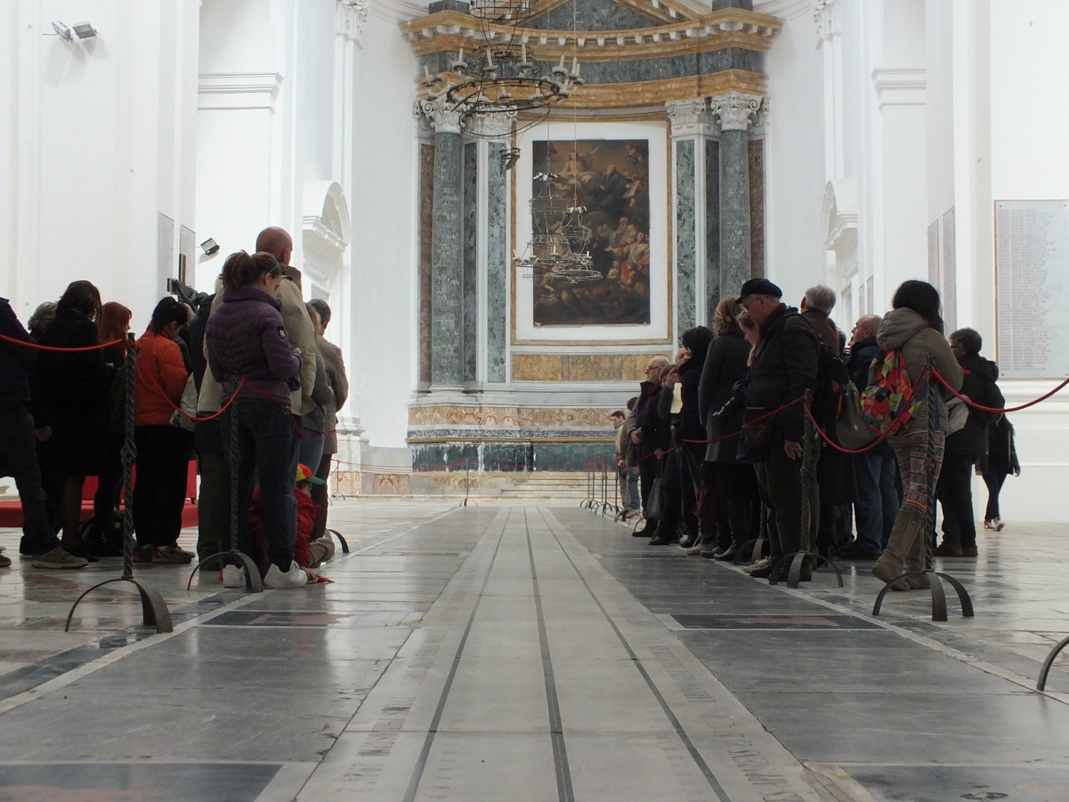 Alle 12.07 la proiezione del sole è entrata dal foro gnomico del soffitto della cappella e si è proiettata sulla lunga meridiana della basilica. «Questo fenomeno si verifica solo quando il sole è alto e si trova all’equinozio come in questo momento, a declinazione zero, ed è qualcosa di meraviglioso», aggiunge Trobia. Che prosegue: «L’importanza di appuntamenti del genere rientra anche nella vita quotidiana, perché è su questi fenomeni che, nel corso del tempo, si è strutturato il nostro calendario gregoriano». La spiegazione di Trobia è semplice: «Anticamente si decise di realizzare le meridiane all’interno delle chiese in modo da determinare con precisione l’equinozio di primavera dal quale dipende la data delle Pasqua e di tutte le successive feste cristiane».