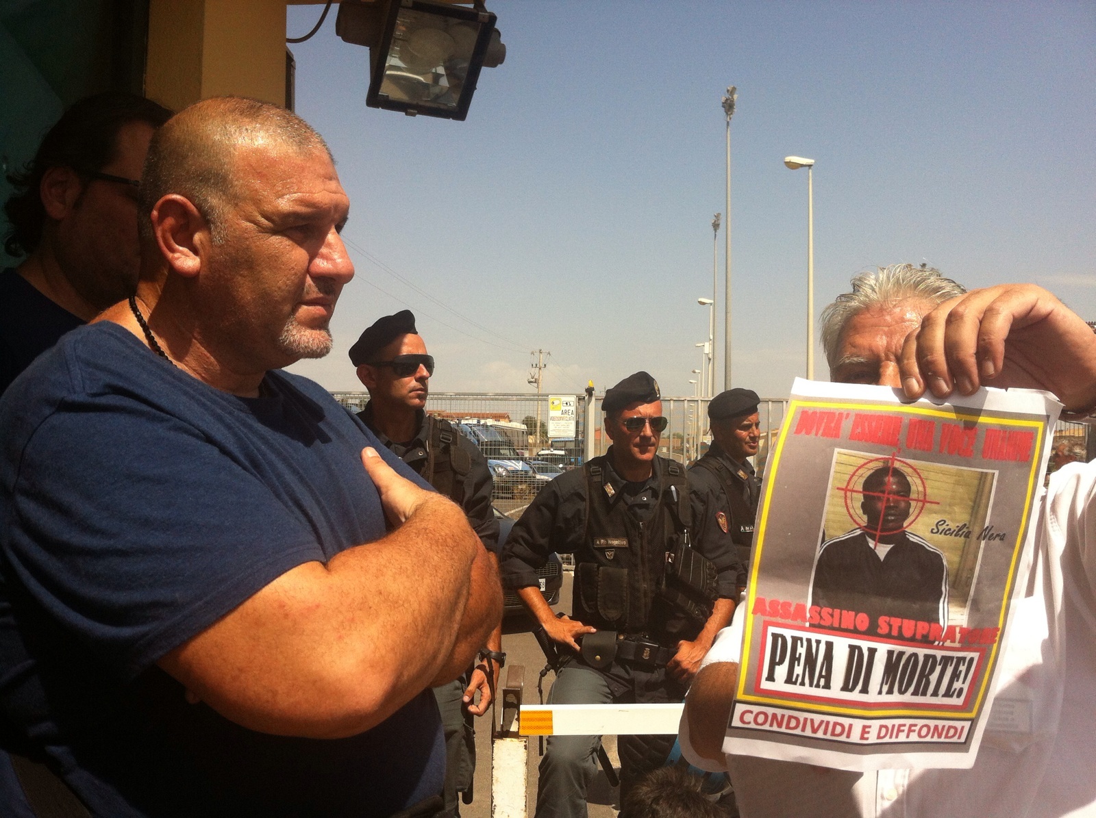 Il leader leghista, intanto, si discosta dal programma ufficiale per una visita privata ai familiari di Vincenzo Solano e Mercedes Ibanez, uccisi sabato scorso a Palagonia. Dell’omicidio è sospettato il 18enne ivoriano Mamadou Kamara, ospite del Cara fino al momento del suo arresto. Una tragedia che ha riacceso l’attenzione sul centro e sull’integrazione dei cittadini con i migranti. Un signore distribuisce dei volantini che invitano a partecipare a una manifestazione domenica mattina a Palagonia. Sul foglio campeggia la foto di Kamara con un mirino sopra e la scritta «Assassino e stupratore. Pena di morte». «Ministro Alfano, ministro scafista», urlano intanto i sostenitori di Salvini. Polizia e carabinieri hanno disposto che gli ospiti del centro non possano entrare e uscire dall’ingresso principale ma dal retro.