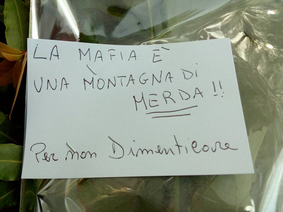 La notte tra giovedì e venerdì ignoti avevano distrutto la targache commemorava il poliziotto Filadelfo Aparo, Cirino Catalano, l’operaio Carmelo Di Giorgio, Alfio Pisano e l’imprenditore Francesco Vecchio. Era stata collocata in una piccola aiuola della villa Marconi lo scorso 23 maggio, su iniziativa del primo istituto comprensivo Vittorio Veneto e della coop Beppe Montana, in occasione della strage di Capaci.