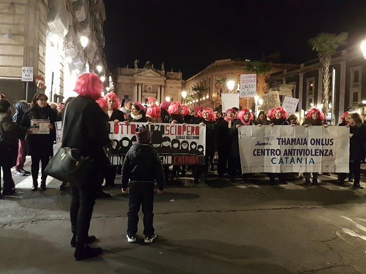 In piazza anche tanti uomini, tra cui Gabriele, che ha 30 anni e vive un rapporto a distanza. «Rispetto le amicizie della mia fidanzata perché so che non c’è differenza tra me e lei e, anzi, nonostante la vorrei qui, la supporto nella scelta di vivere all’estero». «È scontato vedere donne in piazza – aggiunge un amico – ma deve essere l’uomo il primo a rispettare la donna, dal punto di vista fisico e psicologico». Idee che, durante il percorso, hanno creato scompiglio tra chi non accetta che alla festa delle donne le protagoniste portino «i causi» e in un’anziana coppia che si trova in discordia sul ruolo delle donne. Durante il corteo, alcune vie di Catania sono state simbolicamente intitolate alla politica Lina Merlin, alla matematica Ipazia di Alessandria, alla poetessa Saffo.