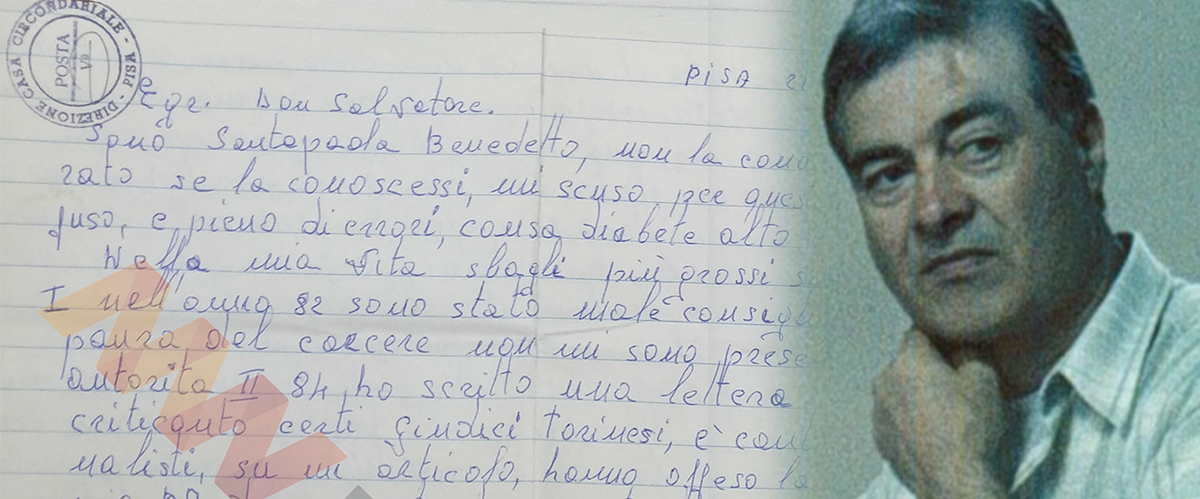 «Sono Santapaola Benedetto, non la conosco, sarei onorato se la conoscessi, mi scuso per questo scritto confuso e pieno di errori, causa diabete alto e mal di testa. Nella mia vita gli sbagli più grossi sono stati due». Sono queste le parole che sceglie uno dei boss più sanguinari di Cosa nostra per scrivere una lettera e presentarsi a padre Salvatore Resca, prete della chiesa etnea dei Santi Pietro e Paolo. È il 21 settembre 1993 e Benedetto Santapaola si trova rinchiuso nella casa circondariale Don Bosco di Pisa. La polizia lo ha catturato cinque mesi prima in una masseria nelle campagne di Mazzarone, a 80 chilometri da Catania, dopo una lunga e discussa latitanza.