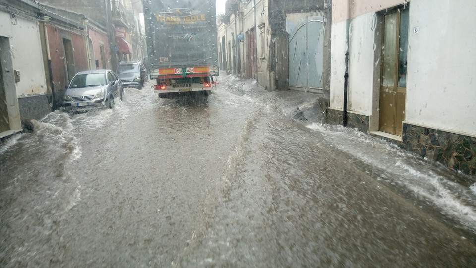Pesanti disagi alla circolazione stradale e allagamenti fra Piedimonte Etneo e Linguaglossa, dopo un violento nubifragio che si è abbattuto, intorno alle 13, sul versante nord-orientale dell’Etna, culminando intorno alle 14.30 in una grandinata. Le maggiori difficoltà si sono registrate a Piedimonte, dove si è resa necessaria l’attivazione del Centro operativo comunale di Protezione civile. In via Bellini, fondamentale tratto della strada statale 120 che congiunge i centri montani alla costa ionica ed all’autostrada A18, il manto stradale è stato gravemente danneggiato in più punti dal passaggio dell’acqua piovana. Il traffico si è paralizzato – soprattutto nella parte orientale del paese – ed alcune abitazioni sono tornate raggiungibili soltanto al termine delle precipitazioni. Numerosi i tombini saltati ed i garage allagati in tutto il territorio, così come i veicoli rimasti in panne lungo corso Vittorio Emanuele II e via Nuova del Convento, via Notara, via Noci e lungo le strade di collegamento alle frazioni Presa e Vena.