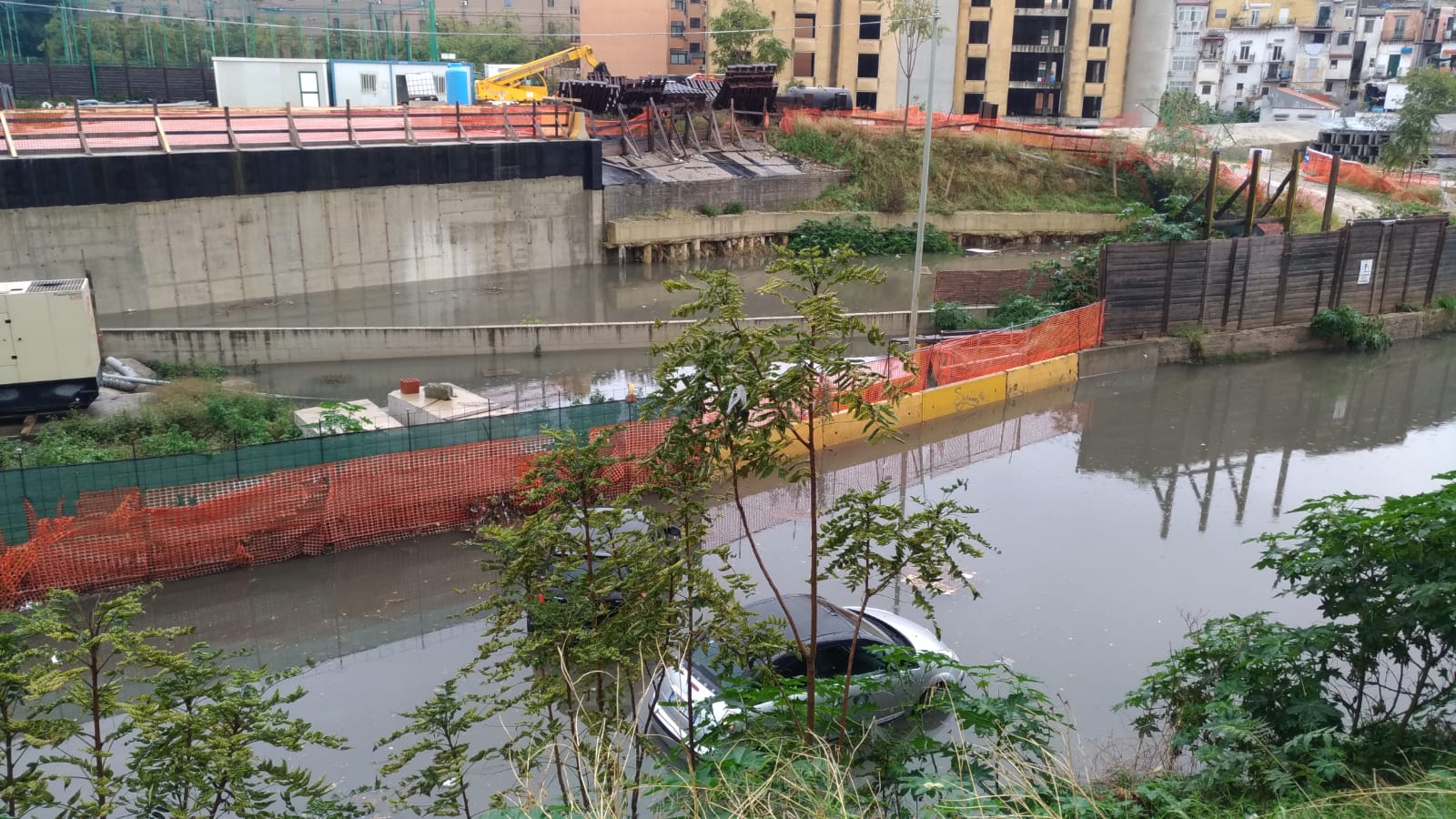 In via Imera la galleria della ferrovia ancora in costruzione è finita completamente sott'acqua. Auto in panne e polizia municipale impegnata su tantissimi fronti: «Tra interventi e controllo ai cimiteri abbiamo tutte le pattuglie fuori». Guarda le immagini