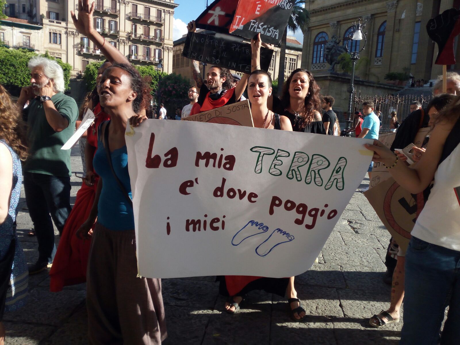 Si è trasformata in una piazza antifascista piazza Verdi, in occasione del sit in annunciato da CasaPound contro l’accoglienza dei migranti, previsto nel pomeriggio davanti il Teatro Massimo. A ostacolare la manifestazione, un gruppo di antifascisti che, fin dalle prime ore del pomeriggio, hanno presidiato in maniera pacifica la piazza impedendo di fatto l’iniziativa. Ad aprire il corteo dei pochi militanti di destra presenti, all’incirca una decina, lo striscione con la scritta «Senza soldi all’apparenza, 19 milioni per l’accoglienza». Il riferimento è al recente bando emanato dalla Prefettura del capoluogo siciliano che prevede lo stanziamento di ben 19 milioni di euro per il mantenimento annuale di circa 1500 profughi o presunti tali, da dislocare in città e in provincia e, a partire dal 1 giugno, il bando della gara d’appalto disciplinerà il «servizio di accoglienza e assistenza dei cittadini stranieri richiedenti protezione internazionale in strutture nella disponibilità dei soggetti partecipanti».