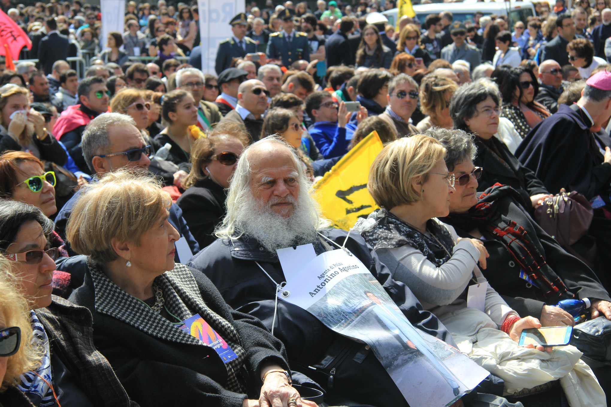 Un lungo applauso è partito spontaneo quando sono stati ricordati nomi dei magistrati Giovanni Falcone e Paolo Borsellino, commemorato dalla sorella Rita. C’è chi, seduto tra le prime file a ridosso del palco, in quel momento ha battuto le mani con più forza, alzando gli occhi al cielo. Sono passati quasi 24 anni da quel 19 luglio 1992, ma Salvatore Catalano ricorda come fosse ieri gli ultimi giorni di vita del fratello Agostino, morto nella strage di via D’Amelio insieme ai colleghi della scorta e allo stesso giudice Borsellino. «Agostino dopo l’attentato di Capaci si è trasformato in un’altra persona, era preoccupato e silenzioso. Non ci ha mai detto che faceva parte della scorta di Borsellino, si è tenuto dentro il segreto nel rispetto della legge, ma anche per farci stare più tranquilli. Ho ancora impresso nella mente il suo sguardo, ci ha salutati dalla finestra di casa quasi a volerci dire non so se ci rivedremo».