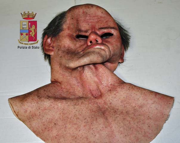 I rapinatori, al momento dell’arresto, indossavano due maschere di carnevale in silicone, capaci di fare assumere loro le sembianze di due anziani. Come è possibile apprendere dalle immagini, hanno approfittato dell’ingresso di una cliente nel negozio per sorprendere il titolare, puntandogli contro una pistola, risultata poi a salve.