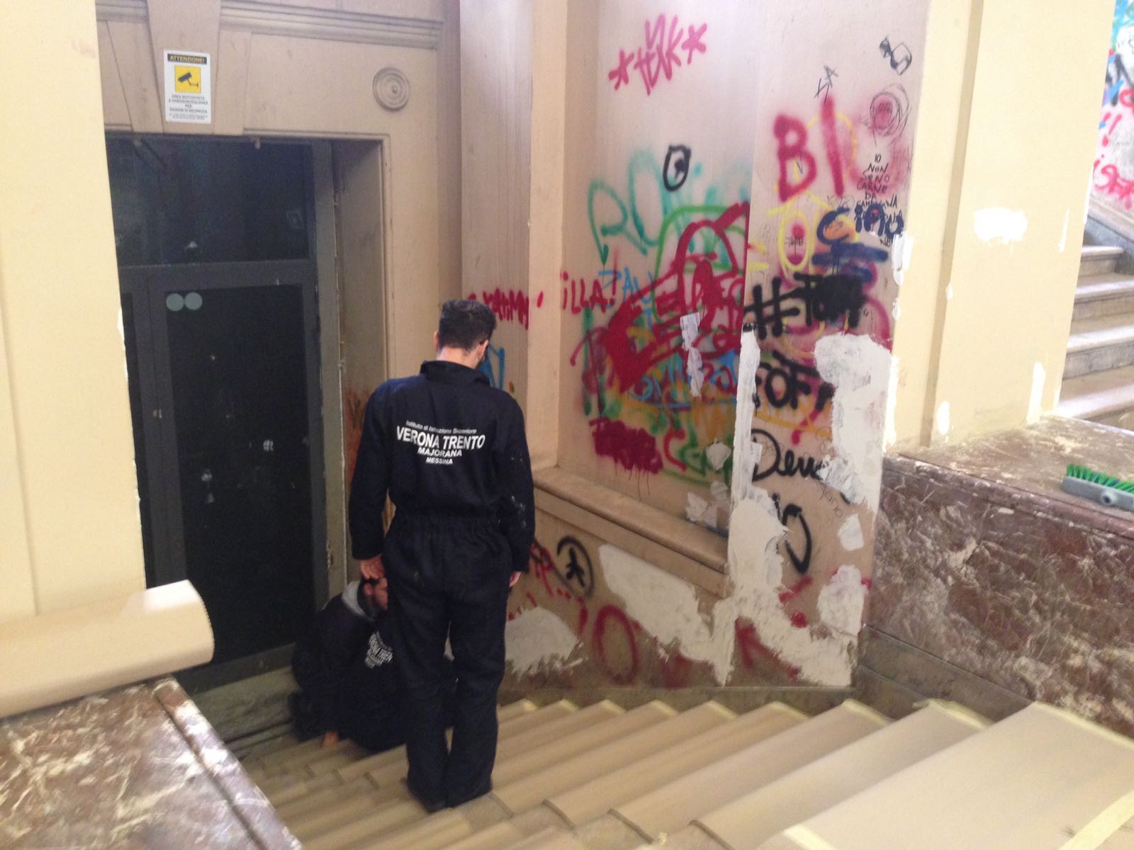 Dallo scorso venerdì li puoi trovare tutte le mattine all’interno della galleria Vittorio Emanuele di Messina a lavorare per ripulire quello che i loro coetanei hanno sporcato. Sono i 12 studenti dell’istituto tecnico Verona Trento impegnati in un progetto di alternanza scuola lavoro. L’Istituto, guidato dalla dirigente Simonetta Di Prima, continua a trasformare studenti in professionisti che possono spendere da subito il proprio diploma nel mondo del lavoro. Gli studenti – che frequentano l’ultimo anno e sono guidati dal professor Fabio Sciva – hanno iniziato il lavoro insieme a una ditta specializzata sotto l’egida dei Beni Culturali di Messina che controlla l’esecuzione dei lavori.