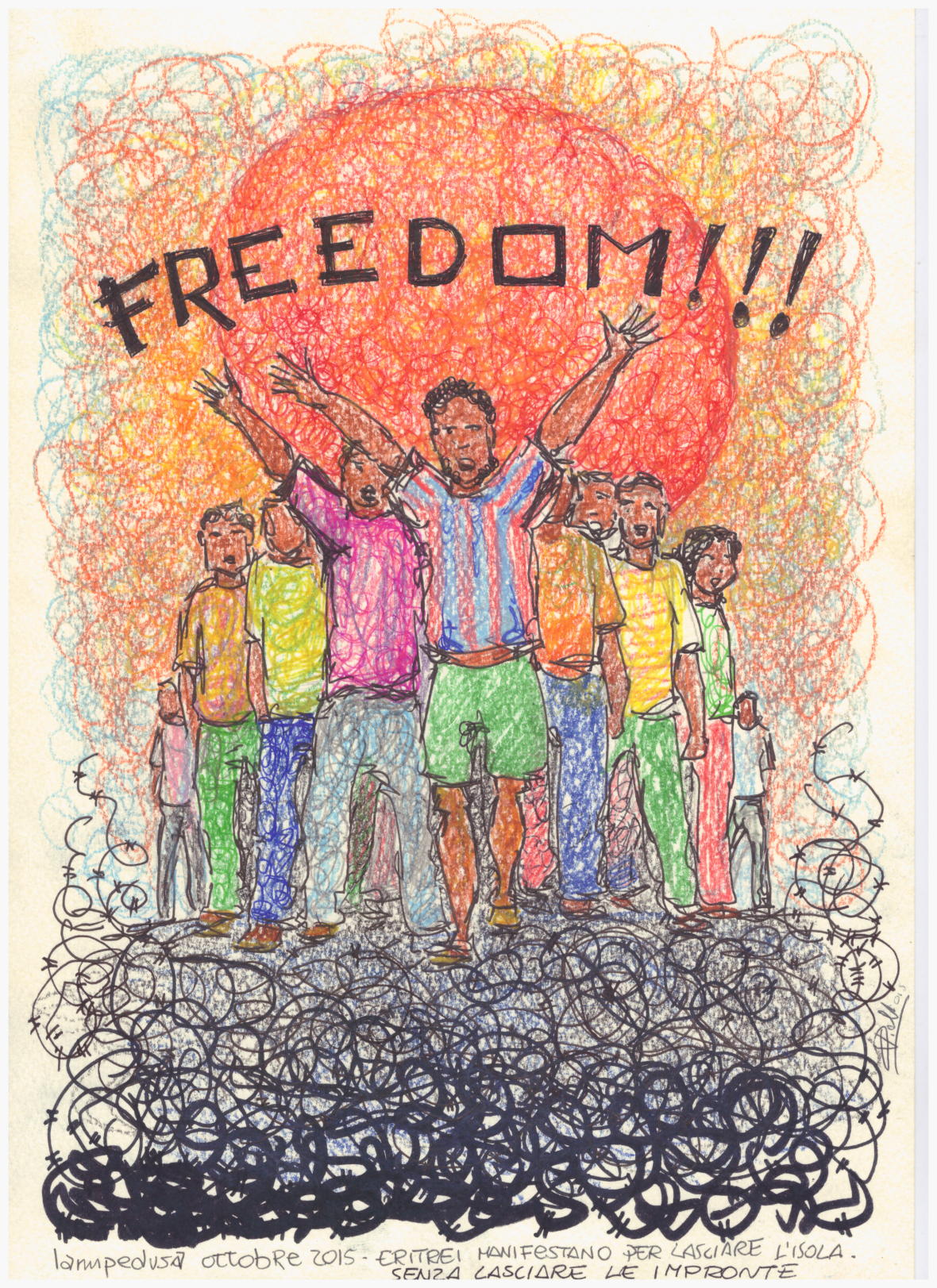 E così agli operatori non rimane che fare accoglienza a 360 gradi. «Siamo presenti a Lampedusa con un nostro punto in cui forniamo alle persone che arrivano sui barconi beni di prima necessità, compreso qualche giocattolo per i più piccoli». A contribuire a finanziare questa attività sono anche i disegni che Piobbichi fa per narrare le storie in cui si imbatte. «Credo sia il modo più rispettoso per parlare delle esperienze vissute da queste persone», conclude l’operatore perugino.
