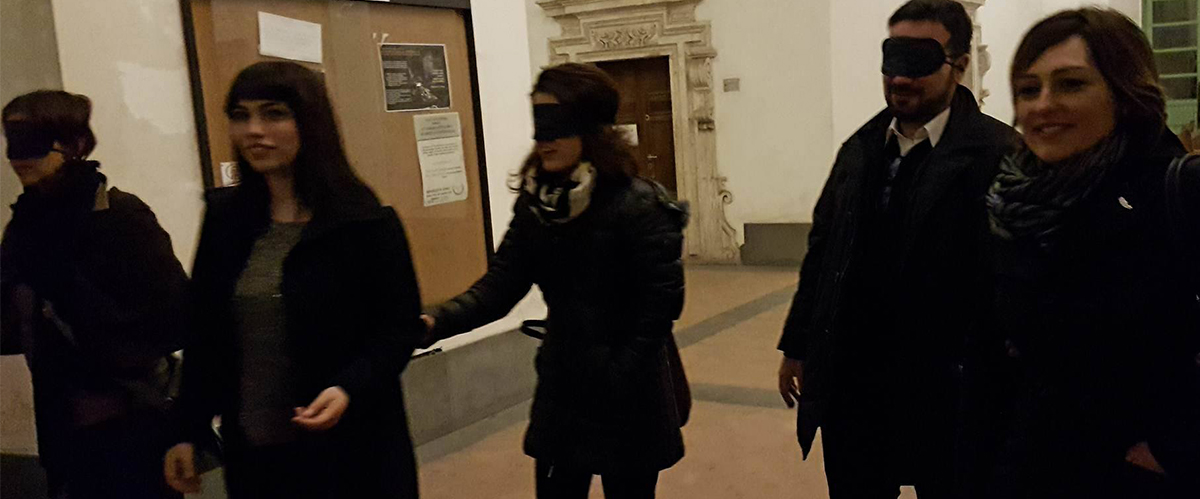 L'itinerario, sperimentato da Officine culturali, ha come obiettivo quello di riuscire a immedesimarsi nei disabili visivi per capire come riescono a fruire l'arte. Tra le guide della serata c'è Manuela Lupica, che spiega: «Con gli occhi aperti tralasciamo la pavimentazione o i cambi di temperatura tra le stanze». Guarda le foto