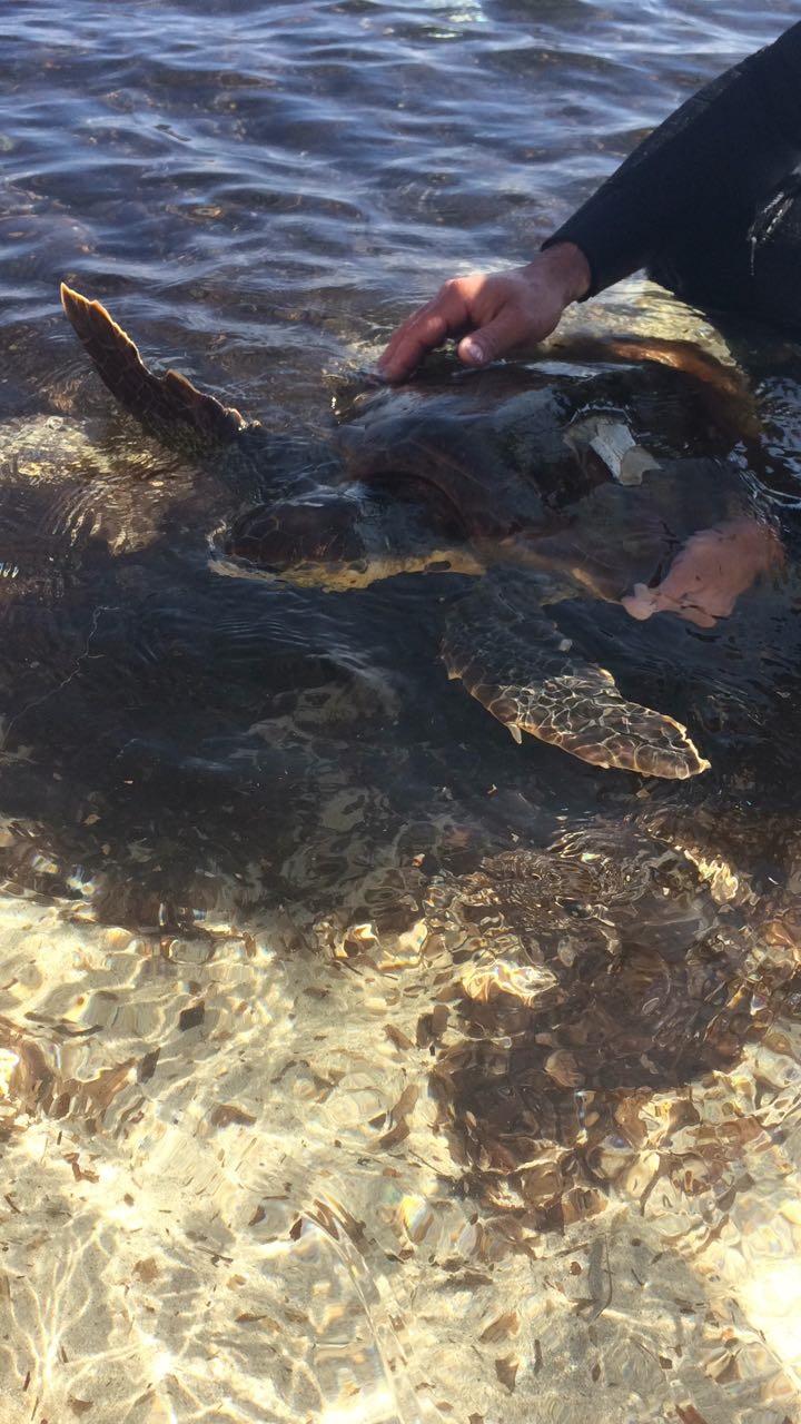 Il carapace della tartaruga era danneggiato e l’animale aveva un amo conficcato in bocca, che le è stato tolto immediatamente senza ferirla ulteriormente. Con la collaborazione degli addetti dell’Albaria, che hanno messo a disposizione un laser pieno d’acqua di mare, la tartaruga è stata curata fino all’arrivo degli uomini dell’Ente protezione animali.