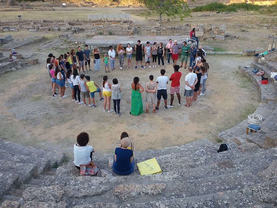 Nelle tappe successive gli spettatori si sposteranno nell’ekklesterion e nel teatro dove potranno assistere ai miti di Amore e Psiche, Pigmalione, e ai dialoghi della morte. «Inizialmente l’evento è stato pensato come una ricostruzione della vita cittadina del passato – continua il promotore – nel corso degli anni si è arricchito dell’elemento drammaturgico con l’inserimento di testi letterari del periodo greco e romano». Giovani, adulti e anziani talentuosi si cimentano nella recitazione dei brani classici, all’interno di un laboratorio teatrale, promosso dalla stessa associazione. «Con il supporto dell’Archeoclub – racconta Carmen Di Grazia, 33enne guida turistica –abbiamo fondato una compagnia teatrale che coinvolge gran parte degli aidonesi. Siamo dilettanti ma il risultato finale è sorprendente. E si sono aggiunti anche tanti ragazzi di Enna e Piazza Armerina». Le fa eco Filippo Giustra, ingegnere di 52 anni, che posticipa i suoi impegni lavorativi, pur di partecipare alle prove. «Lo faccio con passione – dice – perché voglio dare il mio contributo a un’iniziativa che ritengo importante per far conoscere al resto del mondo Aidone e Morgantina, una delle più belle polis greche».