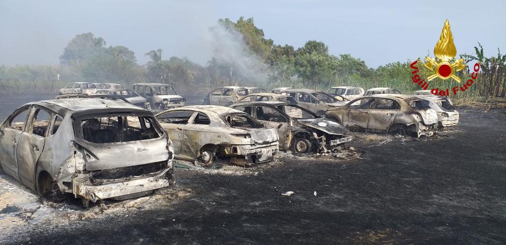 Noto, 30 auto distrutte da un incendio a Eloro Ancora in atto 17 roghi in tutto il Siracusano