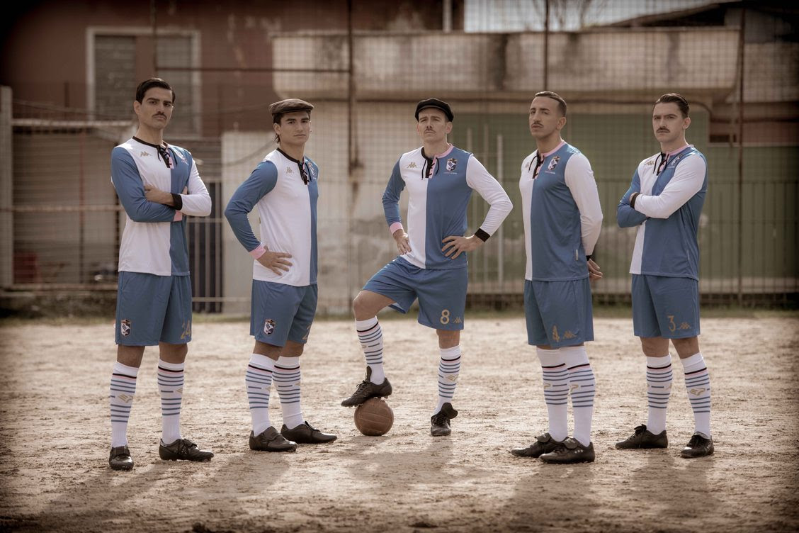 E per l’occasione, i giocatori del Palermo Andrea Accardi, Niccolò Corrado, Malaury Martin, Nicola Rauti e Michele Somma hanno posato in una location inedita: l’antico campo in terra battuta della Fincantieri, tra i più antichi ancora in attività in città. In questa speciale maglia celebrativa firmata da Kappa e disegnata dallo storico Giovanni Tarantino, anche i colori sono fuori dall’ordinario: per la prima volta nella storia del club, i classici rosa e nero lasciano spazio al bianco e al blu: i colori del primo logo della storia del Palermo, realizzato nel 1920, quando per la prima volta la squadra adottò la denominazione Palermo Football Club.