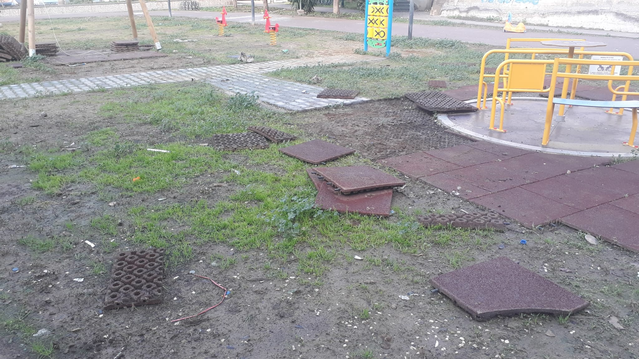 Un nuovo atto di vandalismo a Paternò. Il parco inclusivo destinato ai bambini disabili di piazza Aldo Moro, nel quartiere Coniglio, è stato distrutto. Il danneggiamento arriva poco più di cinque mesi dopo l’inaugurazione, avvenuta lo scorso 25 giugno. A essere danneggiati – staccandoli dal terreno – sono stati i tappetini anticaduta. Fatto a pezzi anche uno dei giochi utilizzato dai piccoli rendendolo di fatto inutilizzabile, mentre un altro è stato buttato in mezzo alla piazza. I primi danneggiamenti si erano già registrati a settembre, quando i vandali avevano preso di mira l’altalena e i cestini per la raccolta dei rifiuti. A peggiorare il quadro sono le condizioni di pulizia della zona, con rifiuti sparsi un po’ ovunque.