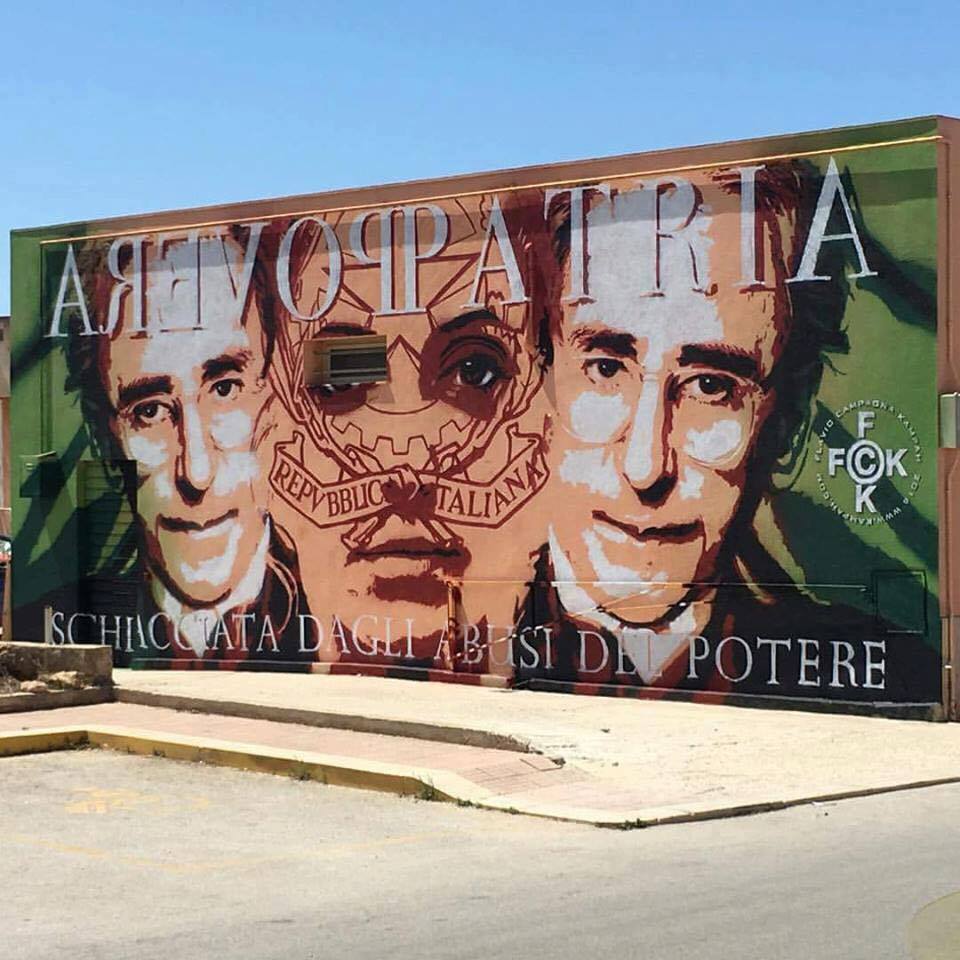 Il Comune del Trapanese si è arricchito delle creazione di otto street artist, vincitori del concorso Art’s Oasis. Tra questi c'è anche Flavio Campagna, che ha scelto come tema la canzone del cantautore catanese, Povera Patria. «Rappresenta perfettamente la mia idea dell’Italia». Guarda le foto
