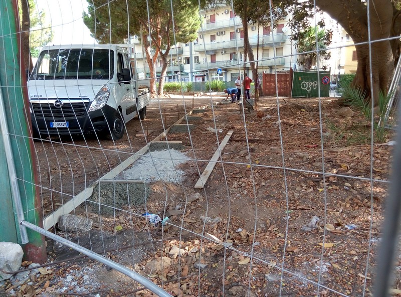 Anzitutto gli operai dei Coime hanno rimosso tutti i rifiuti e il verde anomalo che si erano accumulati in questi anni (qui alcune immagini del prima), quando la recinzione in lamiera aveva sostanzialmente reso l’area un rifugio per senzatetto e tossicodipendenti. Un’operazione che ha incluso anche la zona della statua di Francesco Paolo Ciaccio (sul lato Zisa), da tempo usata come abitazione da un senza fissa dimora, con tanto di masserizie che sono state portate via. Poi sono state sistemate le radici più pericolose degli imponenti ficus che sporgevano fuori terra, quindi si stanno effettuando le opere in muratura, ovvero la ridefinizione del muretto perimetrale – che verrà decorato con pietre per ricreare l’effetto del preesistente muro a secco – e degli accessi (uno, lato via Dante, è già stato ultimato), oltre alla delimitazione di vialetti ed aiuole interne.