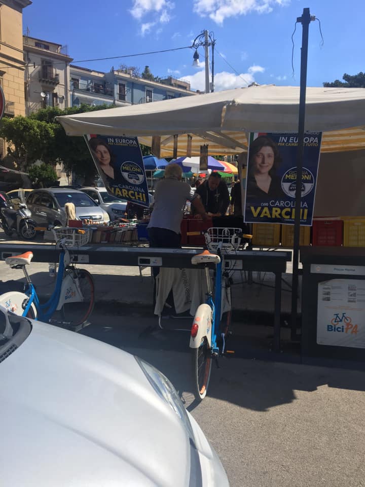 Sono arrivati questa mattina, all’alba, e hanno chiesto di affiggere i manifesti elettorali di Carolina Varchi, candidata per Fratelli d’Italia alle Europee del prossimo 26 maggio. Inondando così il mercato di antiquariato di Piazza Marina. A dimostrare un grande attivismo in favore della politica sarebbero stati alcuni venditori operanti nello stesso mercatino, che non avrebbero trovato resistenze nella maggioranza dei colleghi. La gran parte, anzi, avrebbe accettato di buon grado l’iniziativa.