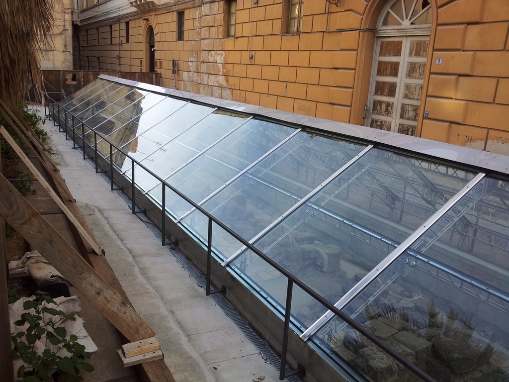 Nel frattempo l’attenzione sull’area si è affievolita e le sterpaglie hanno iniziato a colonizzare la superficie dello scavo. Poi nel 2011 la svolta: «Venne introdotta – continua Not – una nuova linea d’intervento dei fondi Ue dedicata alle tecnologie innovative in ambito archeologico, e il Centro per il restauro presentò delle schede progettuali relative alle indagini sulle pavimentazioni antiche in due siti pilota, ovvero a Solunto e appunto in piazza Sett’Angeli. Adottammo il progetto di recupero dei mosaici e di copertura dell’area redatto dalla Sovrintendenza e iniziammo gli studi e le ricerche».