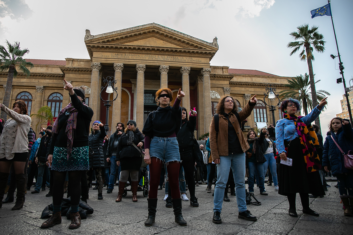 Centinaia di donne hanno animato il flash mob promosso da Non Una Di Meno Palermo e Arci contro lo stupro e la violenza patriarcale sulle donne, sull’onda delle manifestazioni che hanno preso vita dopo quella organizzata in Cile dal collettivo femminista #Lastesis. «Noi crediamo che questo flash mob sia un grido di forza delle donne che in tutto il mondo si stanno unendo per gridare che la colpa è del patriarcato e per urlare contro la colpevolizzazione delle vittime», afferma Ludovica di Non Una di Meno Palermo.