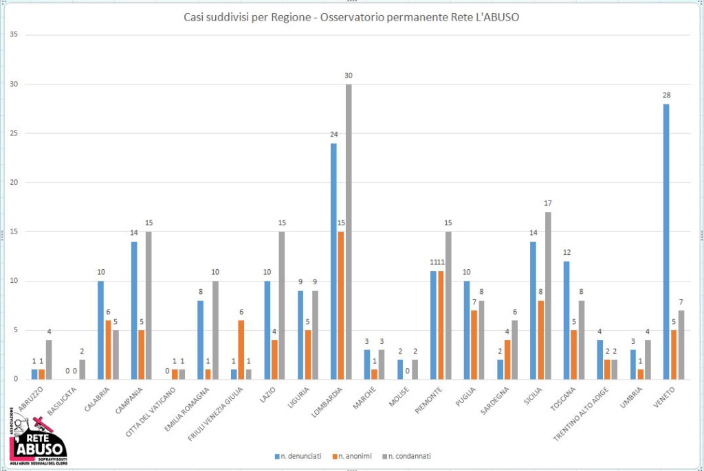«Sui reati di abusi sessuali del clero ai danni di minorenni va tolto il limite della prescrizione». La richiesta arriva da Francesco Zanardi, il fondatore e presidente della Rete l’abuso che ieri ha presentato il primo Report dei sopravvissuti agli abusi sessuali del clero italiano. Stando ai dati forniti dall’osservatorio permanente nei tredici anni di attività su quello che viene definito un «fenomeno endemico», la Sicilia sarebbe al terzo posto per numero di preti pedofili, con 39 casi. Numeri che non prendono in considerazione catechisti, educatori, animatori e altri laici che orbitano nell’ambiente ecclesiastico. Fanno peggio solo la Lombardia con 69 e il Veneto dove se ne contano quaranta. Sull’Isola sarebbero 17 i sacerdoti già condannati in via definitiva per reati di questo tipo e 14 quelli denunciati; a questi si aggiungono otto casi non pubblici, cioè segnalati dalle vittime ma che per improcedibilità spesso legata alla prescrizione, non sono nemmeno noti alle autorità civili. «E da qui emerge l’inerzia dello Stato», commenta a MeridioNews Zanardi che all’età di undici anni è stato lui stesso vittima degli abusi di un sacerdote.