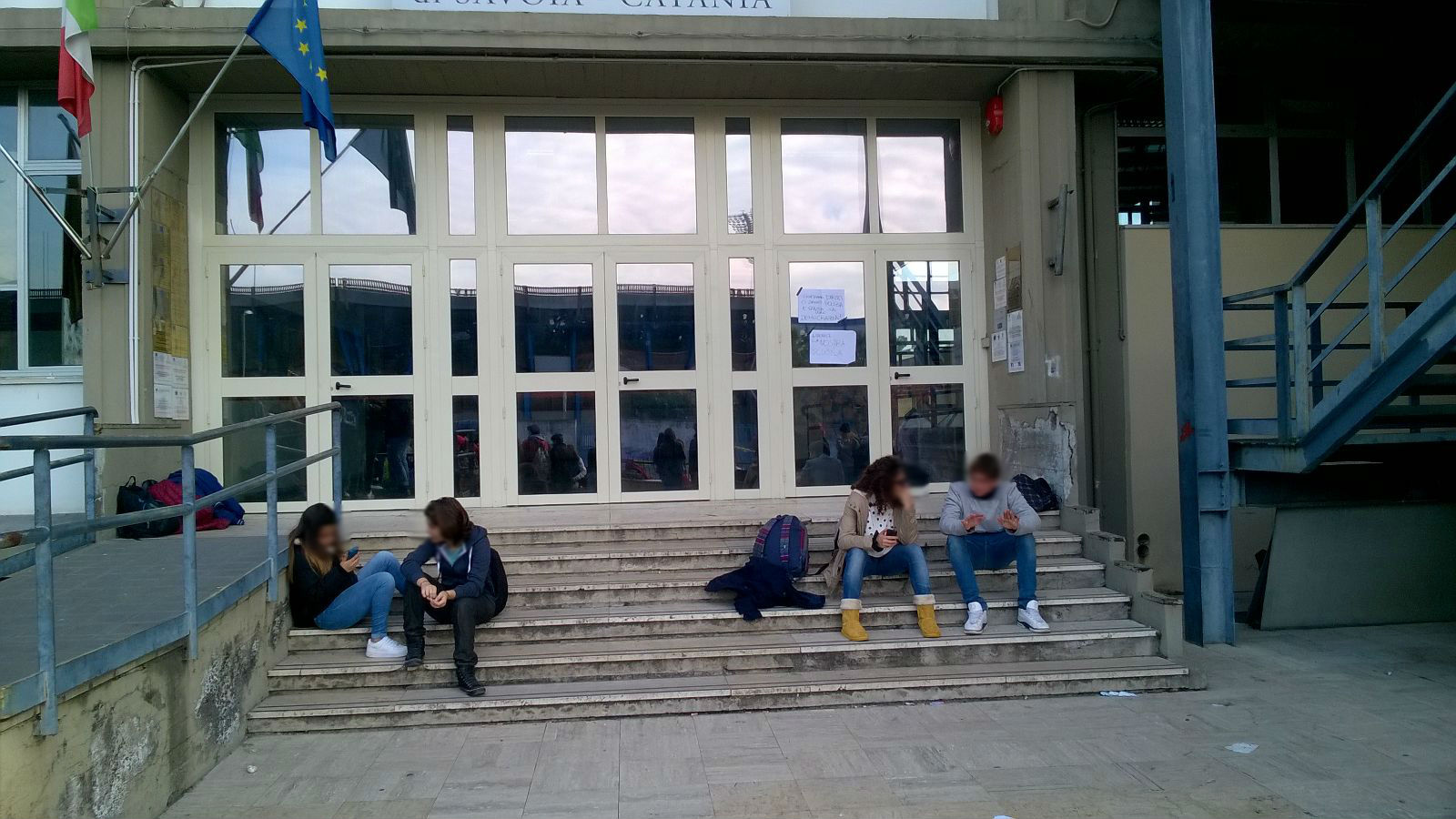 Fallito già ieri sera il tentativo di occupazione, al liceo scientifico Principe Umberto «è stata proclamata l’autogestione», spiega una studentessa. Un buon numero di ragazzi e ragazze avrebbe dormito all’interno del cortile. Per questo motivo il cancello è rimasto aperto, nonostante la chiusura dell’istituto. Che non è stata però comunicata. «Abbiamo perso un giorno di lavoro senza saperlo», lamenta una professoressa. Oggi è stata convocata un’assemblea studentesca per discutere dell’accaduto. Ma alle 11 sono in pochi a essere rimasti nel cortile della scuola. Mentre sulla vetrata del portone sono stati appiccicati due fogli con delle scritte di protesta, una sedia blocca dall’interno una porta.