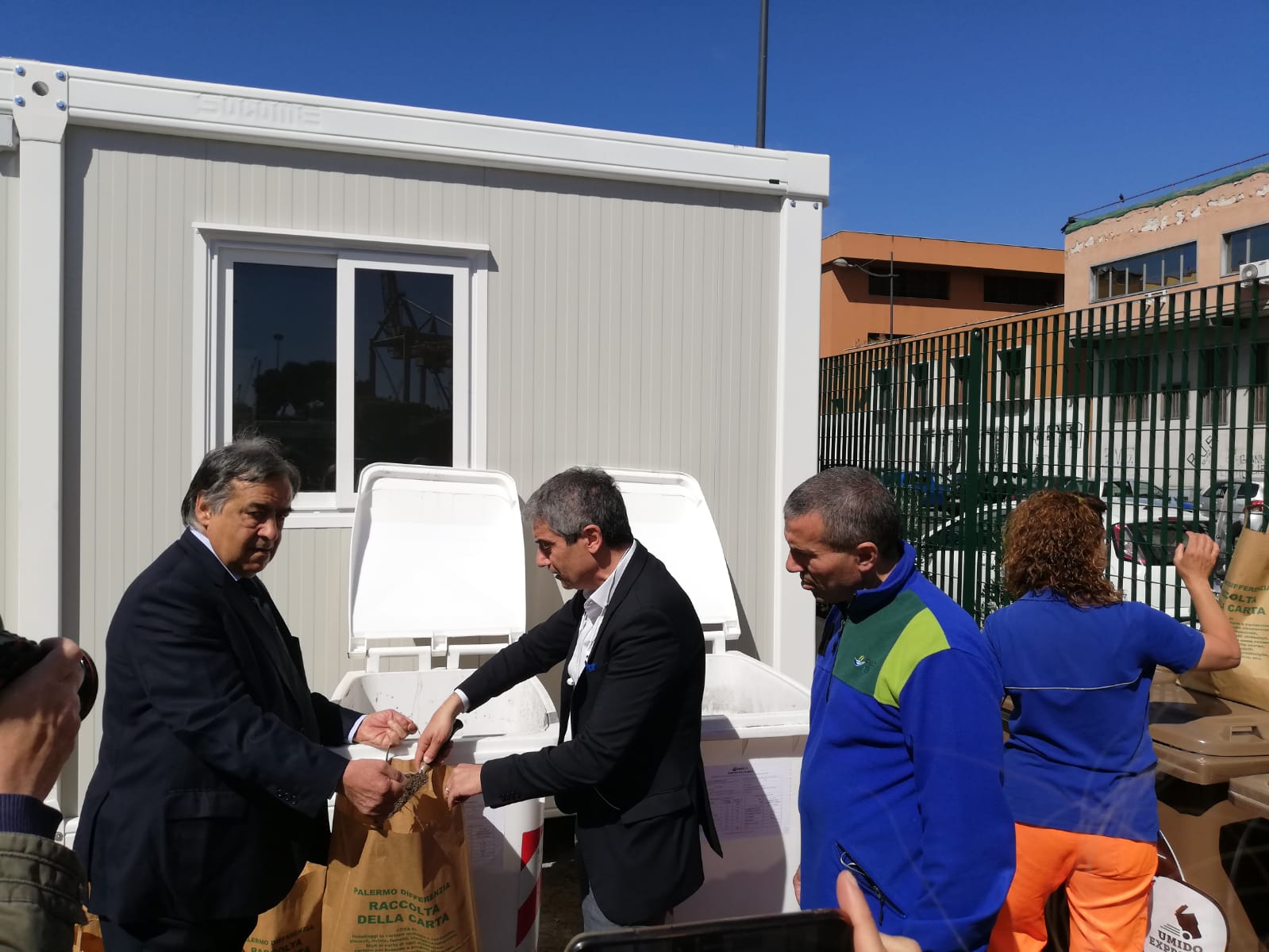 Nel ccr di piazza della Pace si potranno conferire carta, plastica, metalli, vetro, vestiti, olii commestibili, medicinali, batterie, legno e cartucce/toner di stampanti. Inoltre il cittadino potrà ottenere a semplice richiesta un sacchetto di compost («di qualità» precisa Norata), ottenuto nella filiera di Bellolampo dalla maturazione per 90 giorni dei rifiuti organici cittadini. Ancora non è stata installata la pesatrice, ma dovrebbe essere introdotta successivamente per potere attivare il processo premiale che converte i chili di differenziata conferita in punti, e quindi in biglietti Amat. «Con questo – osserva il sindaco Leoluca Orlando – siamo a due centri comunali di raccolta, che sono un’occasione di rigenerazione urbana, ma anche di facilitazione per il conferimento di rifiuti. Esprimo apprezzamento alla Rap, che comunque continuo a stimolare perché funzioni sempre meglio a servizio della città».