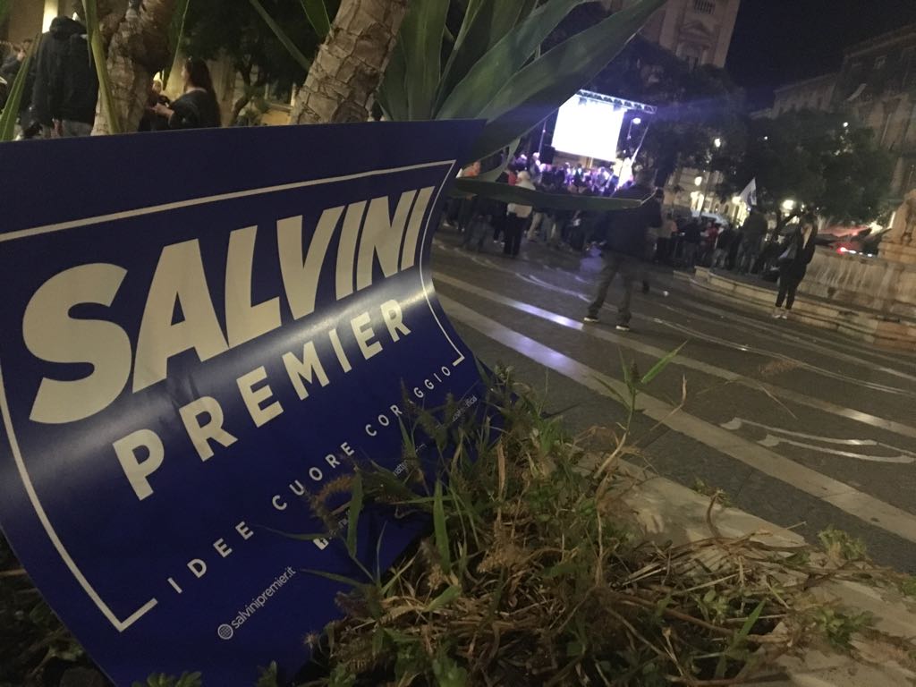 Il comizio si tiene davanti a circa 300 persone che hanno deciso di presenziare nonostante il meteo non prometti nulla di buono. «Mi impegno a cancellare la legge Fornero fosse l’ultima cosa che faccio e la Buona scuola che è una pessima scuola», promette Salvini, parlando già da premier. La chiusura ammicca ai catanesi e alla loro fede: «A febbraio tornerò per Sant’Agata per onorare una ragazza che per non venire meno ai suoi ideali ci ha rimesso la vita. Non mi interessano i voti, io chiedo cuori, teste e passioni che rimangono per sempre. Se voi ci siete – conclude Salvini – io ci sarò per i prossimi trent’anni».
