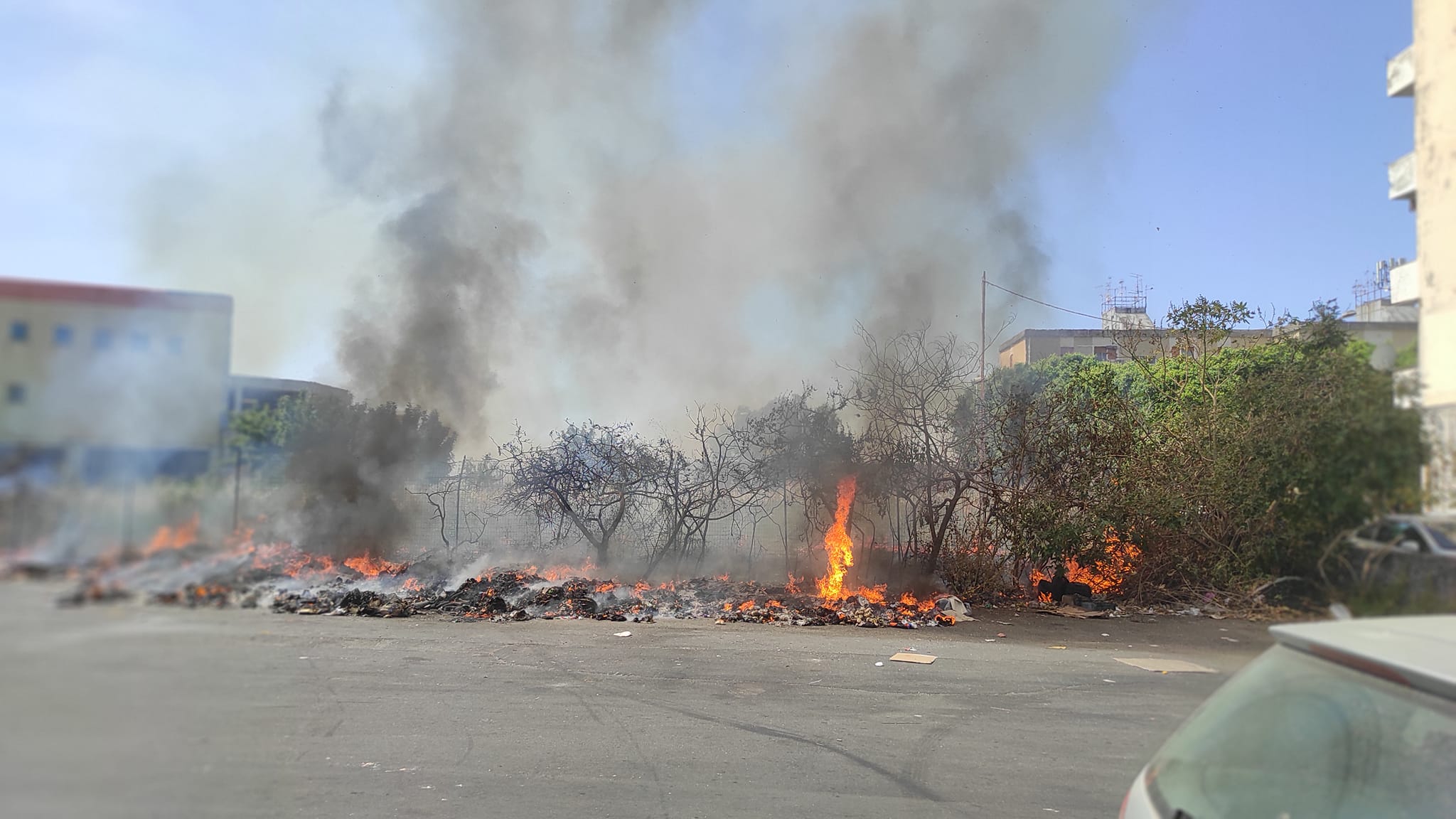 Ennesimo rogo di rifiuti a Catania. L’incendio è stato appiccato in via Giorgio Ambrosoli, a pochi metri di distanza del centro direzionale San Leone. Secondo quanto appreso da MeridioNews i cittadini presenti hanno allertato i vigili del fuoco e si attende l’arrivo del personale. «Mi hanno detto che erano a conoscenza dell’incendio – racconta un testimone alla nostra testata – ma che nell’immediato era difficile intervenire perché avevano uomini e mezzi impegnati in altri roghi». L’incendio minaccia due automobili parcheggiate ed attualmente è favorito dalla presenza di erbacce che non sono state pulite a scopo precauzionale.