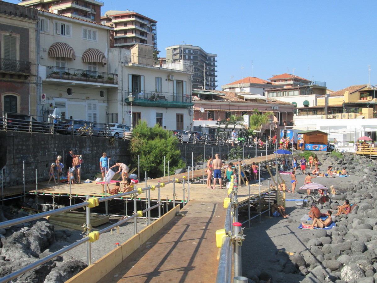 Uno spazio attrezzato per i diversamente abili, proprio nella nota spiaggetta nera cittadina, era stato richiesto dall’associazione catanese Come Ginestre. «Non capisco perché il Comune preferisca collaborare con una associazione di Rimini piuttosto che con le tante locali», dice il presidente Salvatore Mirabella. «Il danno più grave è l’illusione data ai disabili a causa dell’incuria di questa amministrazione», conclude. Smentita intanto la voce secondo cui lo stop ai lavori sarebbe stato imposto dalla capitaneria di porto a seguito di alcune irregolarità. «Mi attiverò per verificare eventuali problemi tecnici – promette D’Agata – Se entro lunedì non riceverò la garanzia che l’opera sarà completata in pochi giorni, chiederò che sia smontata».