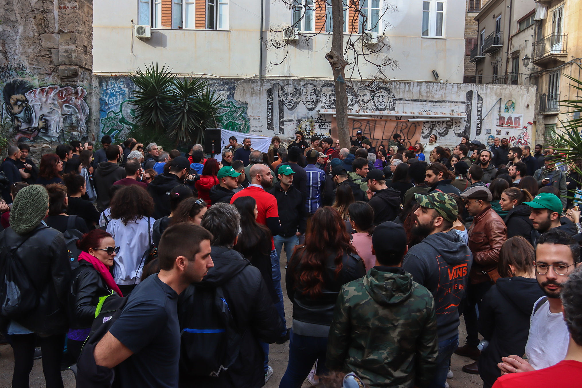 In piazza Mediterraneo continuano ad arrivare palermitani chiamati a manifestare dalla visita a Ballarò di Matteo Salvini. Tra loro diversi esponenti delle associazioni attive sul territorio come Mediterraneo Antirazzista e Sos Ballarò ma anche del movimento delle Sardine o di alcuni partiti. Intanto da Moltivolti, punto di riferimento del quartiere, campeggia un cartello per informare la clientela della chiusura delle attività dalle 15 alle 18 «per consentire ai propri dipendenti il libero esercizio di manifestare in occasione della visita nel nostro quartiere del segretario della Lega Matteo Salvini».