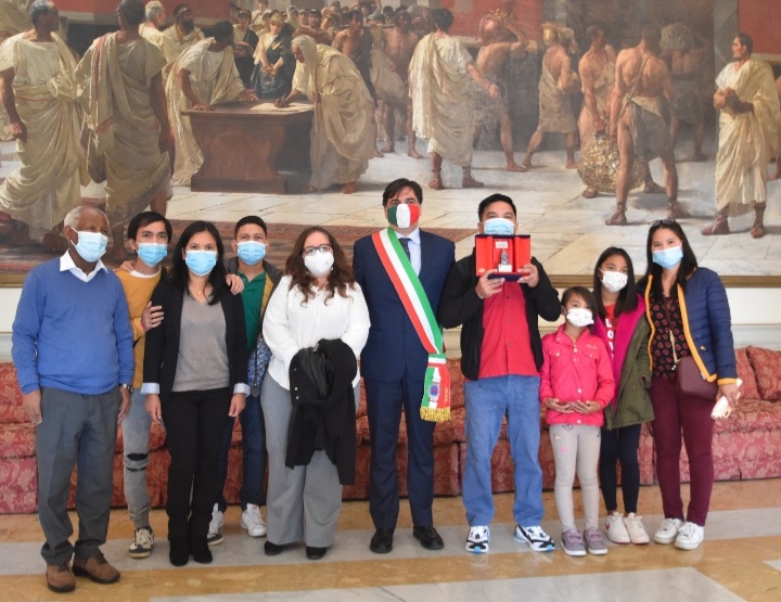 Daniela Grancagnolo, per testimoniare la sua riconoscenza, la moglie di Celestino Melody Manibo, le figlie Isabella Angela (di 10 anni) ed Elizabeth (di 7 anni) e alcuni familiari e amici, i segretari della consulta comunale dei migranti Leni Vallejo e Arefayne Beraki.