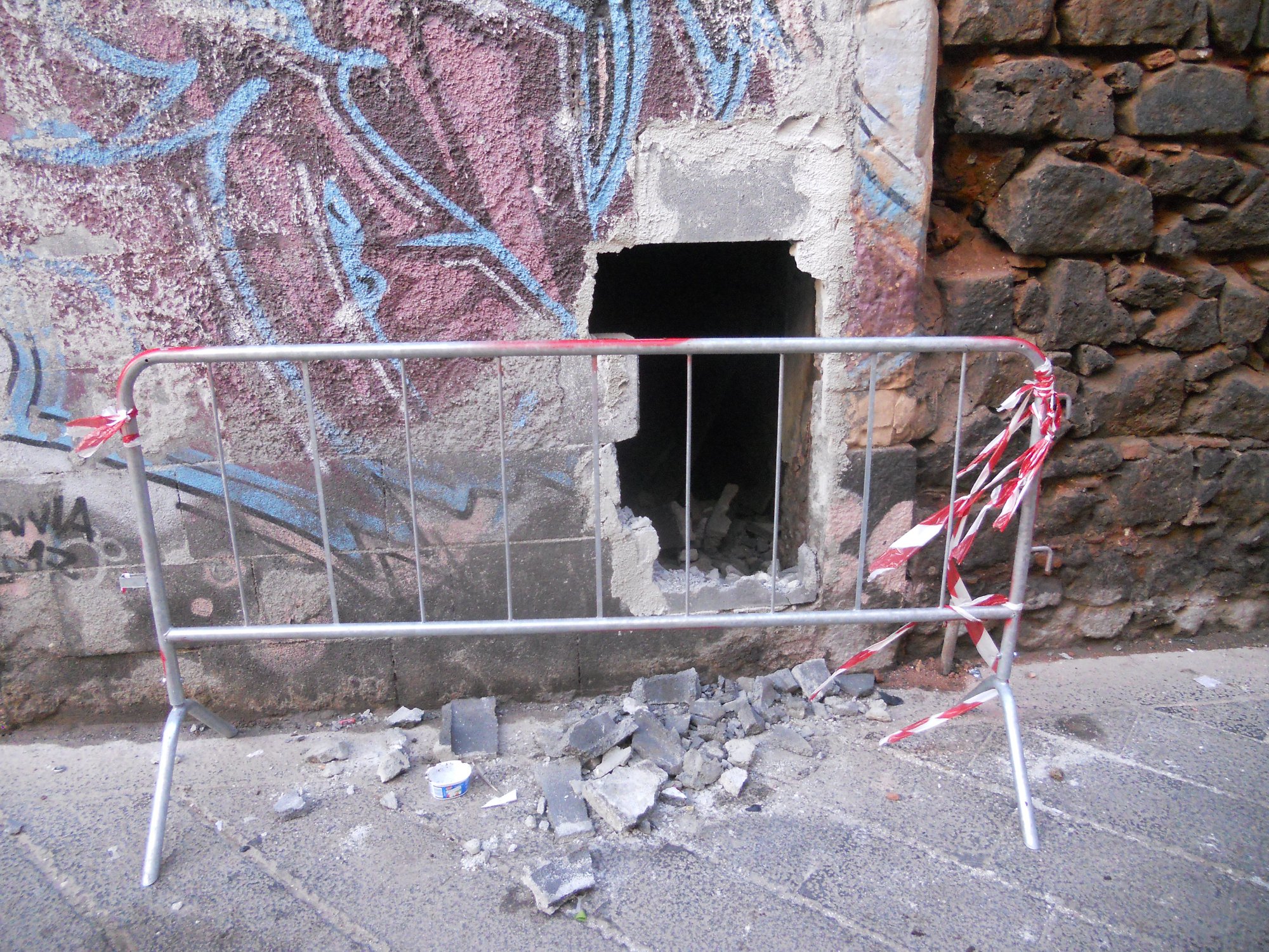 Dopo l'intervento delle forze dell'ordine nella zona di via delle Finanze, sono rimasti per terra non solo i cocci dei mattoni rotti, ma anche i buchi fatti dalla polizia negli accessi murati. Che adesso rimangono aperti. Guarda le foto
