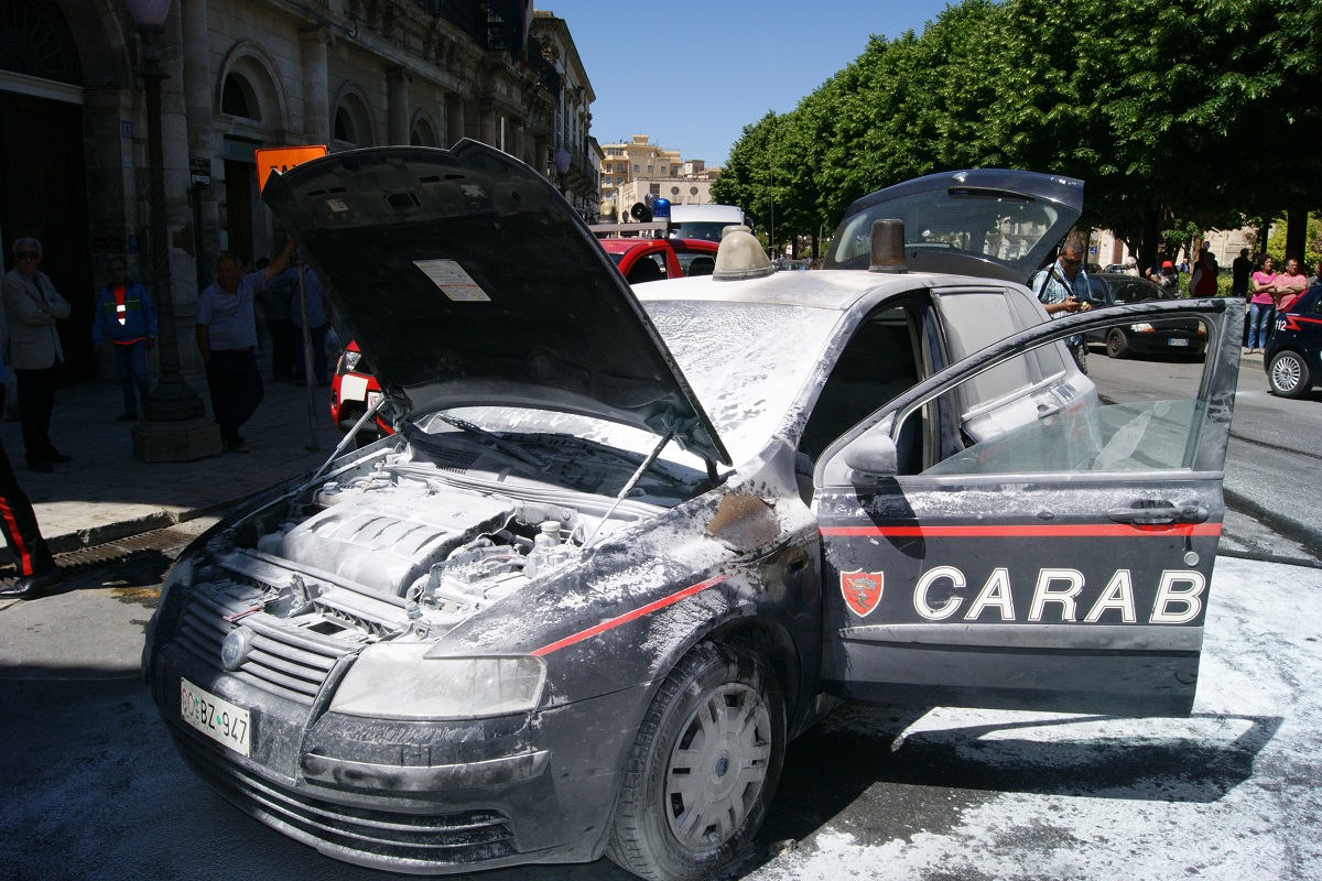 «Una scena da film». Commenta così la lavoratrice di un esercizio pubblico che ha assistito all’incendio di un auto dei carabinieri in piazza Italia, in pieno centro a Scicli, in provincia di Ragusa, stamattina intorno alle 10.30. I militari erano a bordo della vettura quando sono stati invitati a fermarsi da un uomo, Gianluca Agolino, che avrebbe chiesto informazioni. Un pretesto. In pochi attimi ha rovesciato sul mezzo del liquido infiammabile da una bottiglietta e ha appiccato il fuoco con un accendino. Mentre le fiamme iniziavano a ricoprire il tetto della vettura, l’uomo, correndo, ha tentato la fuga. I carabinieri, scesi dall’auto per il pericolo, aiutati da due colleghi fuori servizio che si trovavano in piazza, sono riusciti a fermarlo e arrestarlo.