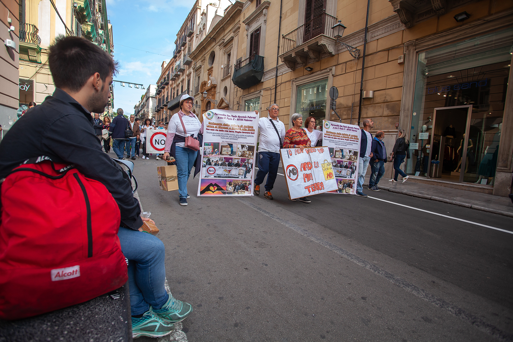 grande, e silenziosa, marcia organizzata dal movimento trasversale e regionale Si resti arrinesci, nato dall’idea di padre Antonio Garau e rappresentato dalle valigie di cartone. Presente, oltre al monsignore e vescovo di Monreale Michele Pennisi, anche l’arcivescovo di Palermo Corrado Lorefice che non ha lesinato baci e abbracci appena giunto a piazza Verdi per il concentramento della manifestazione.