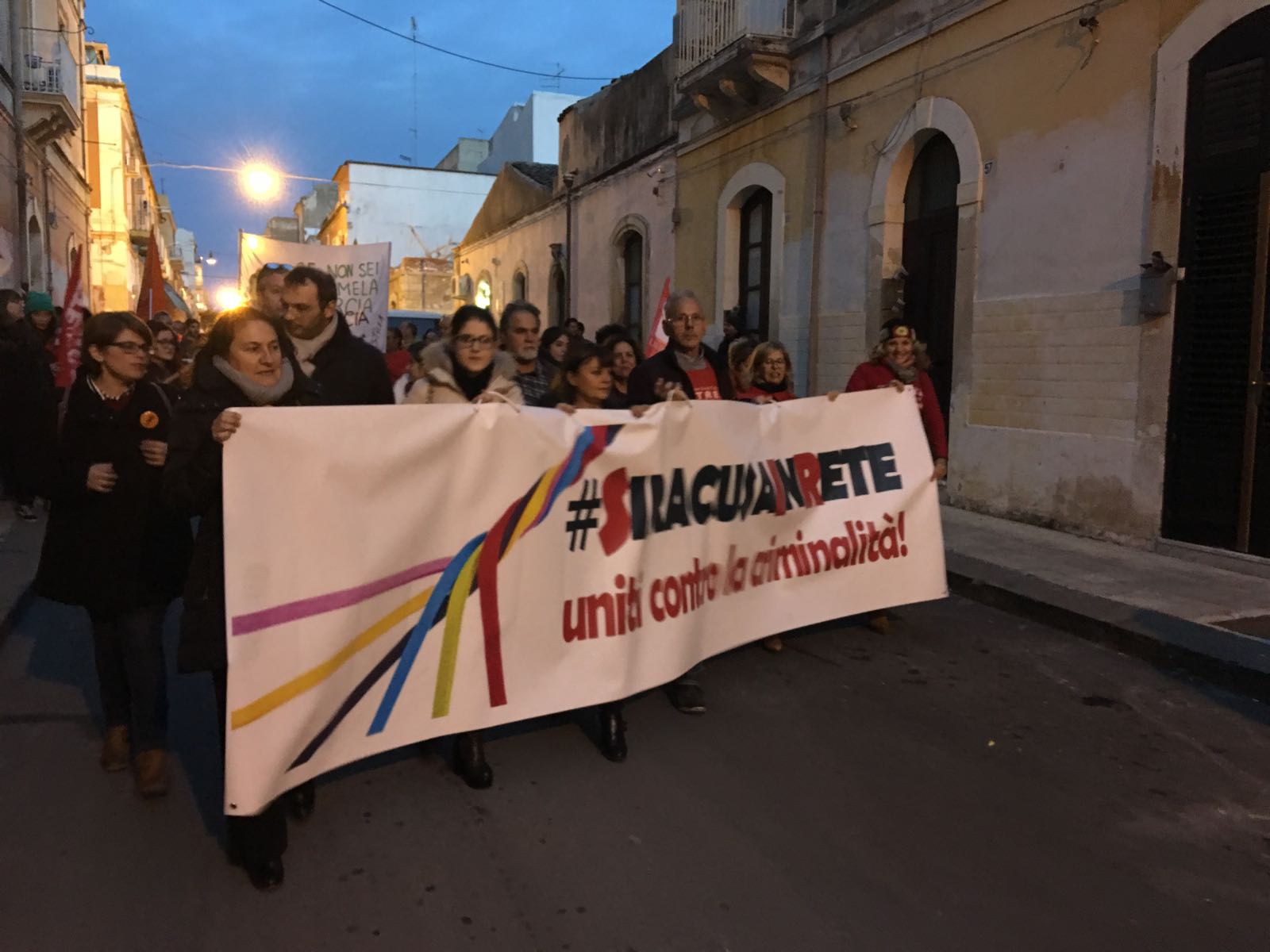 Un corteo colorato fatto di studenti, commercianti, lavoratori, realtà del mondo religioso, con le loro bandiere e gli striscioni preparati per l’evento, hanno mostrato il volto di un’altra Siracusa. «Eravamo tantissimi e da molto tempo non si vedeva in città una manifestazione così partecipata», racconta la referente provinciale di Libera, Lauretta Rinauro che ha fatto parte anche della delegazione che ricevuta dal prefetto Giuseppe Castaldo alla fine del del corteo. I rappresentanti delle realtà che hanno contribuito all’organizzazione hanno consegnato al prefetto un documento. «Non possiamo continuare ad assistere ad atti incendiari, attentati dinamitardi rivolti ad attività commerciali e al diffondersi di una evidente illiceità – si legge – Ci siamo chiesti quale possa essere lo strumento giusto che, come società civile, potremmo utilizzare per dare forza alla nostra città. Il punto di partenza – concordano – è fare rete, reagire insieme, fare forza sul noi, resistere, darci da fare, costruire una Siracusa fatta di progetti, impegno, onestà e lavoro. Vogliamo chiedere alla cittadinanza, alle istituzioni e alle autorità di avviare un percorso comune di riappropriazione per una Siracusa libera dai soprusi, dalla criminalità, dal timore costante di essere attaccata».