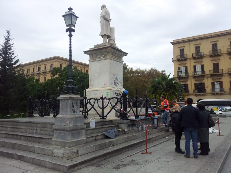 Discorso a parte per la pulizia del monumento, da tempo imbrattato da scritte, fin dai primi giorni successivi al restauro di fine 2012. «L’idea – spiega il rup – era quella di far montare la cancellata al termine o in contemporanea con la ripulitura delle parti lapidee da parte del team della Reset guidati dalla dottoressa Serena Bavastrelli, ma ciò non è stato possibile perché non sono coincisi i tempi». Questo perché non c’è un calendario ufficiale di questo programma di manutenzione ordinaria, che al momento vede quasi ultimati gli interventi al parco statuario di Villa Giulia, mentre le prossime in lista dovrebbero essere le statue del Giardino Inglese. «La pulizia del monumento dedicato a Ruggero Settimo – assicura Giardina – è comunque prevista in quel programma, bisogna solo attendere un poco. Nel frattempo con il recupero della cancellata facciamo un regalo di Natale alla città».