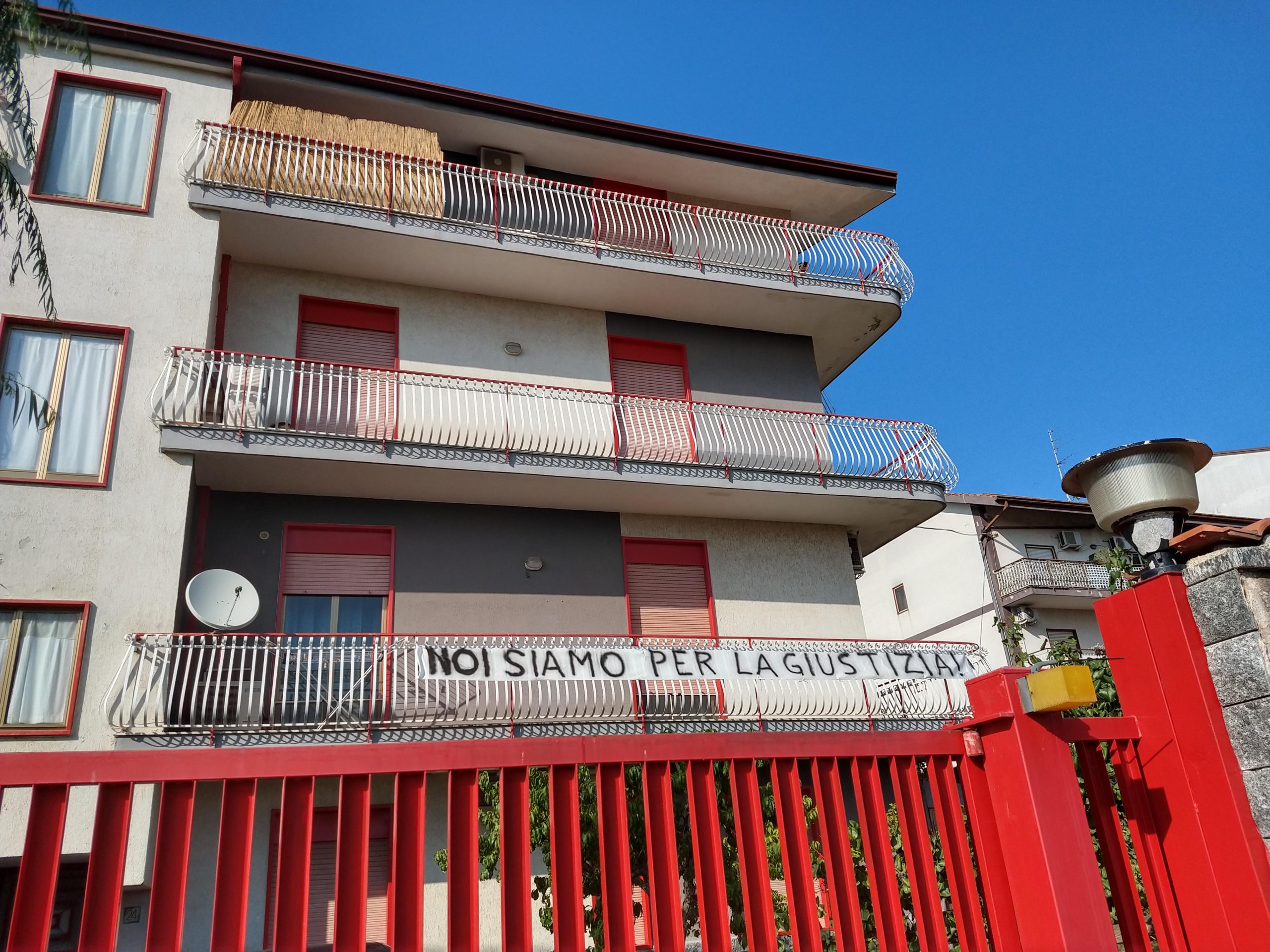 Striscione pro-giustizia nel palazzo dell’arcangelo Casa di Capuana sbarrata per il sit-in di protesta