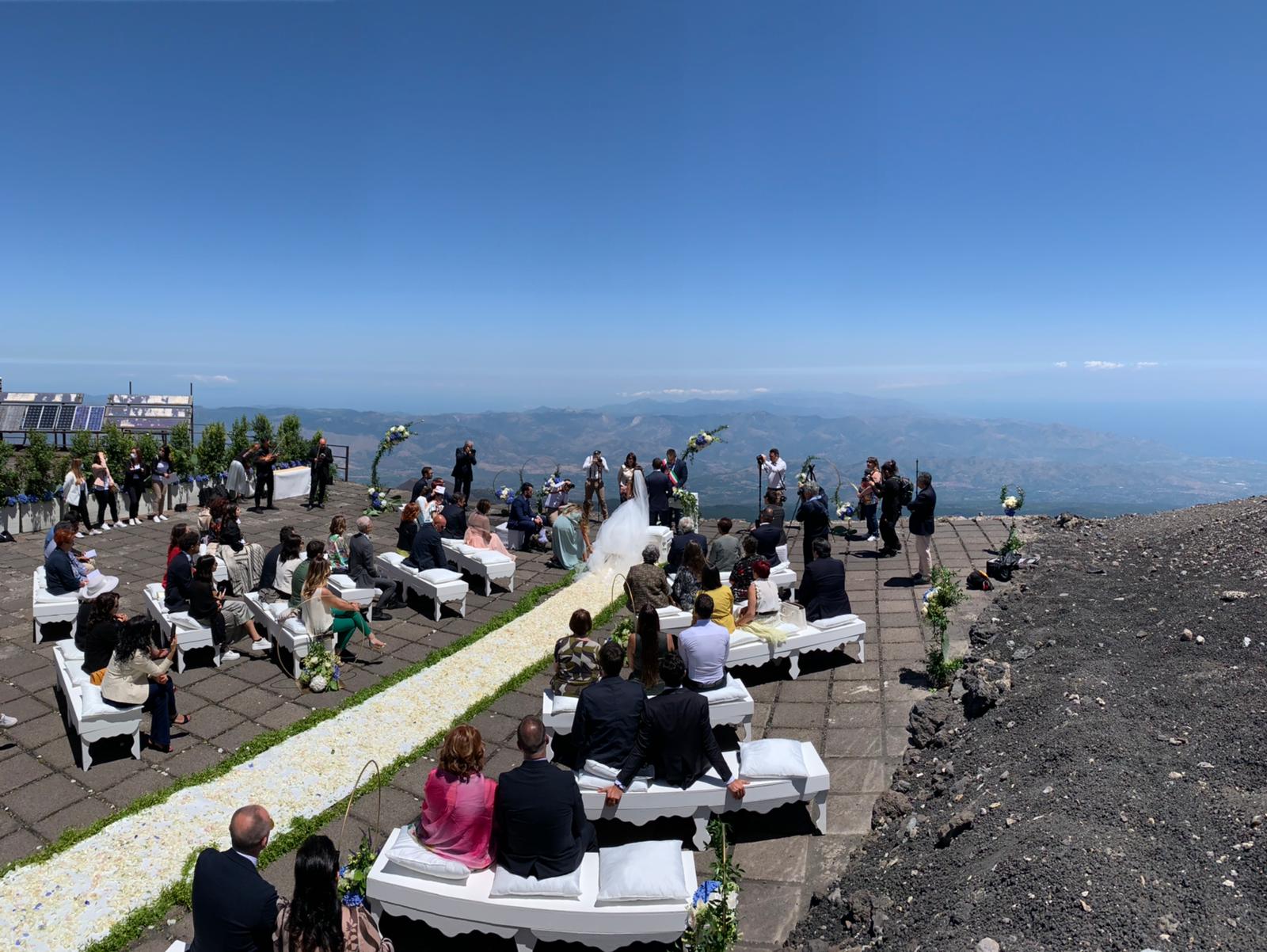 «Non so più da quanto tempo non vedevamo tutta questa gente qui». Il «qui» di cui parla la guida vulcanologica di Etna Nord Vincenzo Greco è l’osservatorio vulcanologico che si trova a quota 2.860 metri. Mentre le escursioni stentano ancora a ripartire dopo il lockdown, l’occasione che ha riunito le persone sull’Etna nella mattinata di ieri è stato il primo matrimonio celebrato con rito civile all’osservatorio di Etna Nord. «È stata una emozione estrema anche per noi – racconta Greco a MeridioNews – e le condizioni sono state ottimali». Poco vento, cielo limpido, crateri calmi. Catanese lei, romano lui volevano entrambi «che fosse una prima volta in un luogo inusuale». A celebrare le prime nozze ad alta quota è stato il sindaco di Linguaglossa Salvatore Puglisi che, già diversi anni fa, aveva spalancato agli innamorati le porte della montagna. Mai però un «sì» era stato pronunciato così in alto.