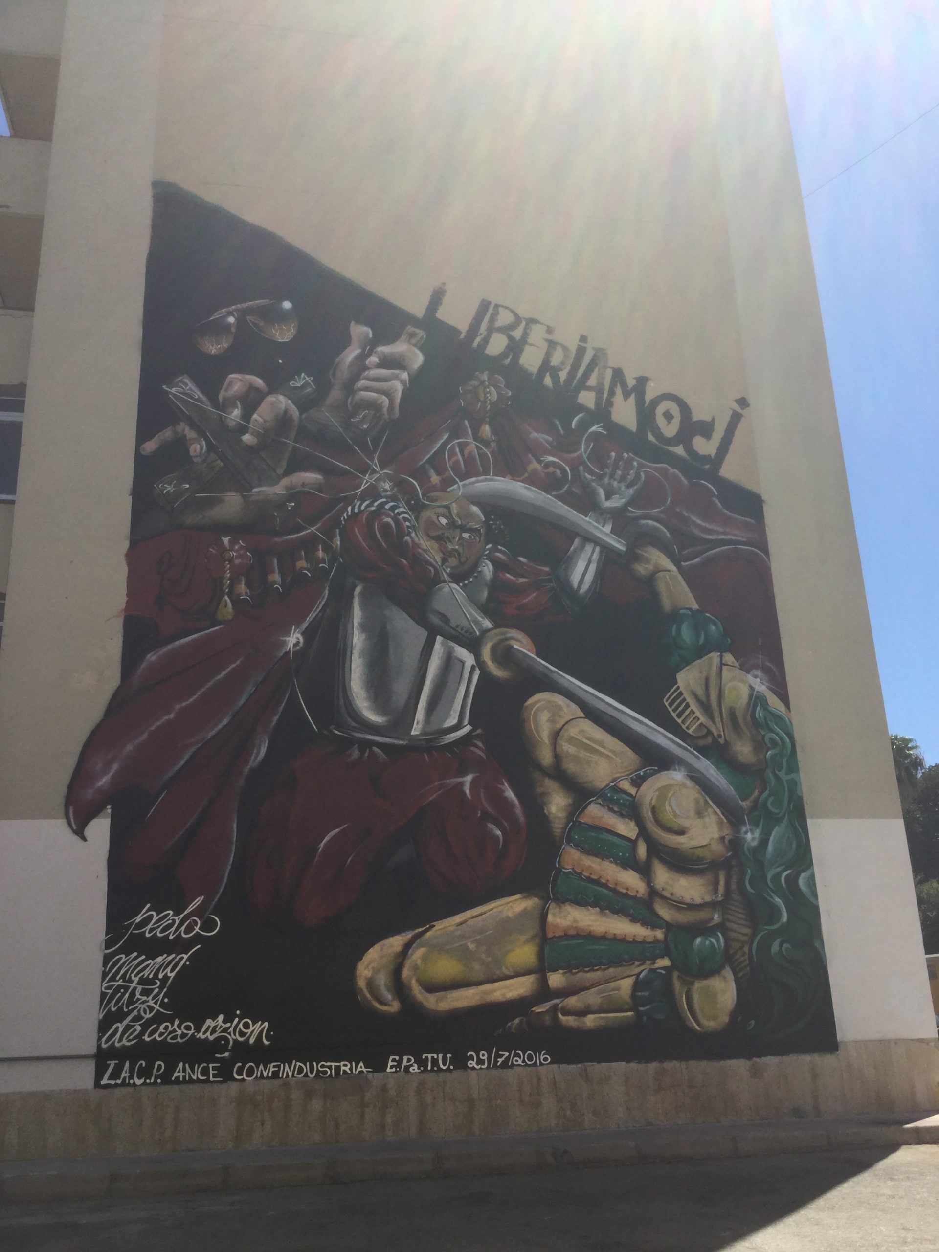 Su quel muro prima si trovavano alcune scritte inneggianti al sanguinario boss mafioso Matteo Messina Denaro. Frasi del tipo «W Matteo Messina Denaro», «Matteo siamo con te». Rimaste su quel muro per mesi, sono state rimosse soltanto dopo la pubblicazione di un articolo da parte di un giornale locale che segnalò il caso. L’istituto autonomo case popolari di Trapani ha quindi pubblicato un avviso pubblico per la presentazione di un progetto artistico, sul tema: «La difesa della legalità e assieme il forte contrasto contro ogni forma di criminalità e in particolare contro quella mafiosa, tale da costituire un’adeguata risposta contro gli ignoti che invece hanno voluto inneggiare alla mafia e alla malavita».