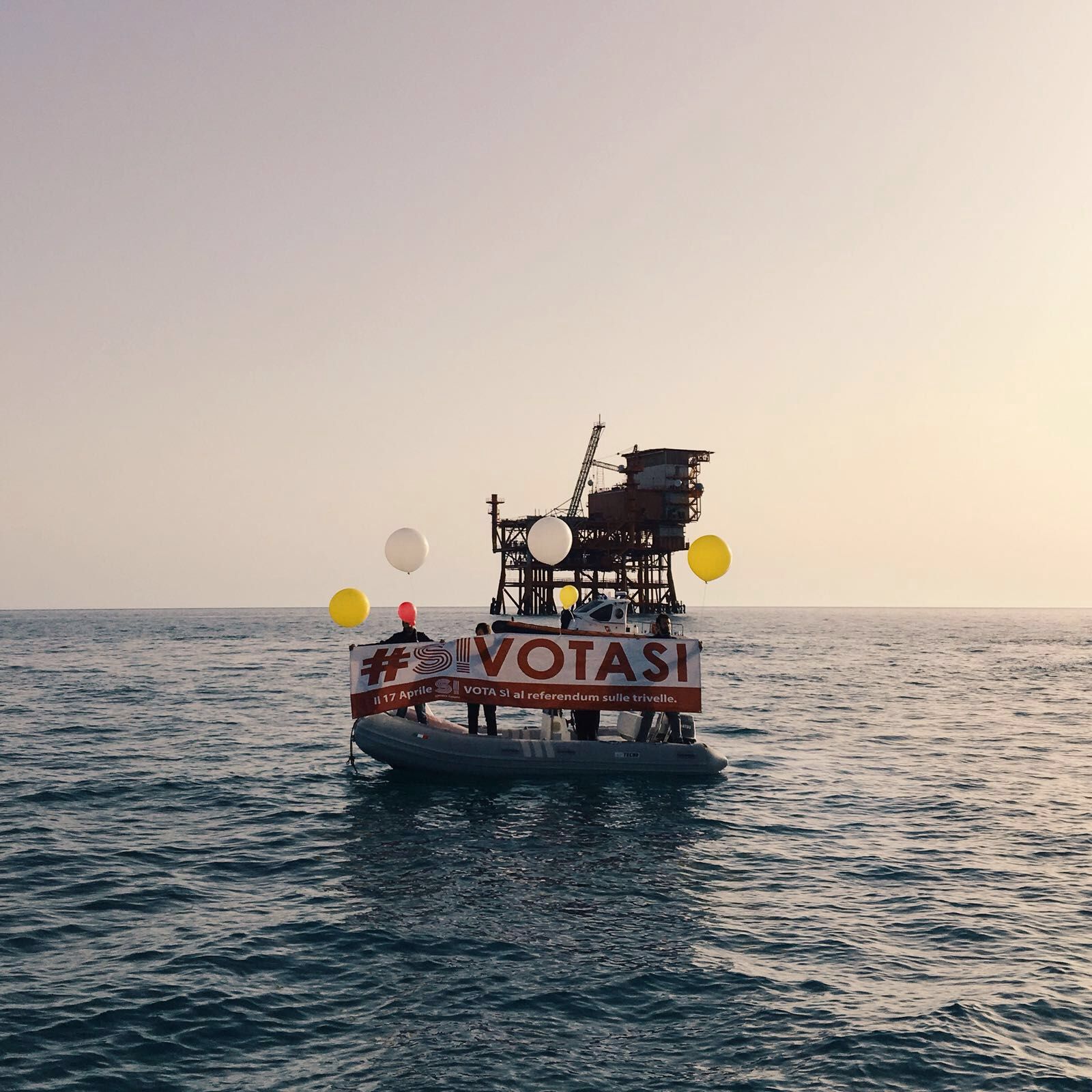 La spedizione è partita dopo aver incontrato i movimenti No Triv locali: i parlamentari, giunti a ridosso della piattaforma, hanno esposto uno striscione con l’hashtag VotaSì. La spedizione non è riuscita a salire a bordo della Prezioso, a causa delle condizioni del mare non favorevoli. «A bordo della piattaforma – fa sapere l’ufficio stampa di Sinistra italiana – non sembrava esserci personale, i parlamentari dovrebbero rientrare nei prossimi minuti a Licata, dove incontreranno i pescatori e tutti quelli che tengono al mare siciliano».