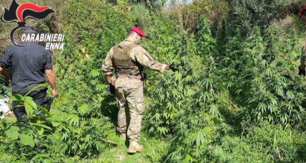Troina, sequestrata piantagione di canapa indiana Era alimentata da un sistema di irrigazione a tempo