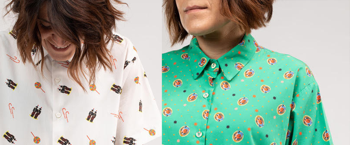 «Il nome della collezione è Lollipop – spiega Valenti – L’ho chiamata così perché i lecca-lecca esprimono bene il senso dell’appagamento immediato, rimandando al piacere generato dalle piccole cose». Per i tessuti sono state realizzate tre grafiche. Una con la Madonnina, che si ispira alla Madonna della Buona Nuova, protettrice del borgo e dei suoi marinai. La seconda riproduce Acitrezza, nella cui grafica sono rappresentati i simboli che decorano i fianchi che proteggono le barche dai pericoli del mare, come la sirena e l’occhio, che testimoniano il rapporto ancestrale tra gli uomini e il mare. E, infine, Lollipop «Che ritrae due carabinieri che si abbracciano tra i lecca-lecca, ripresi dal mio quadro La festa, omaggio a un dipinto futurista del siciliano Pippo Rizza – continua Valenti – La scelta di fare abbracciare i carabinieri si traduce in un’immagine omossessuale, che sposa anche la causa LGBTQ fatta propria dal Ddl Zan, casualmente in via di approvazione nello stesso periodo in cui abbiamo annunciato la collezione. Tutto, comunque, si riconduce sempre alla tradizione siciliana: icone sacre e bancarelle di dolci sono immagini fisse delle feste religiose sicule, a cui mi sono ispirata per realizzare i disegni».