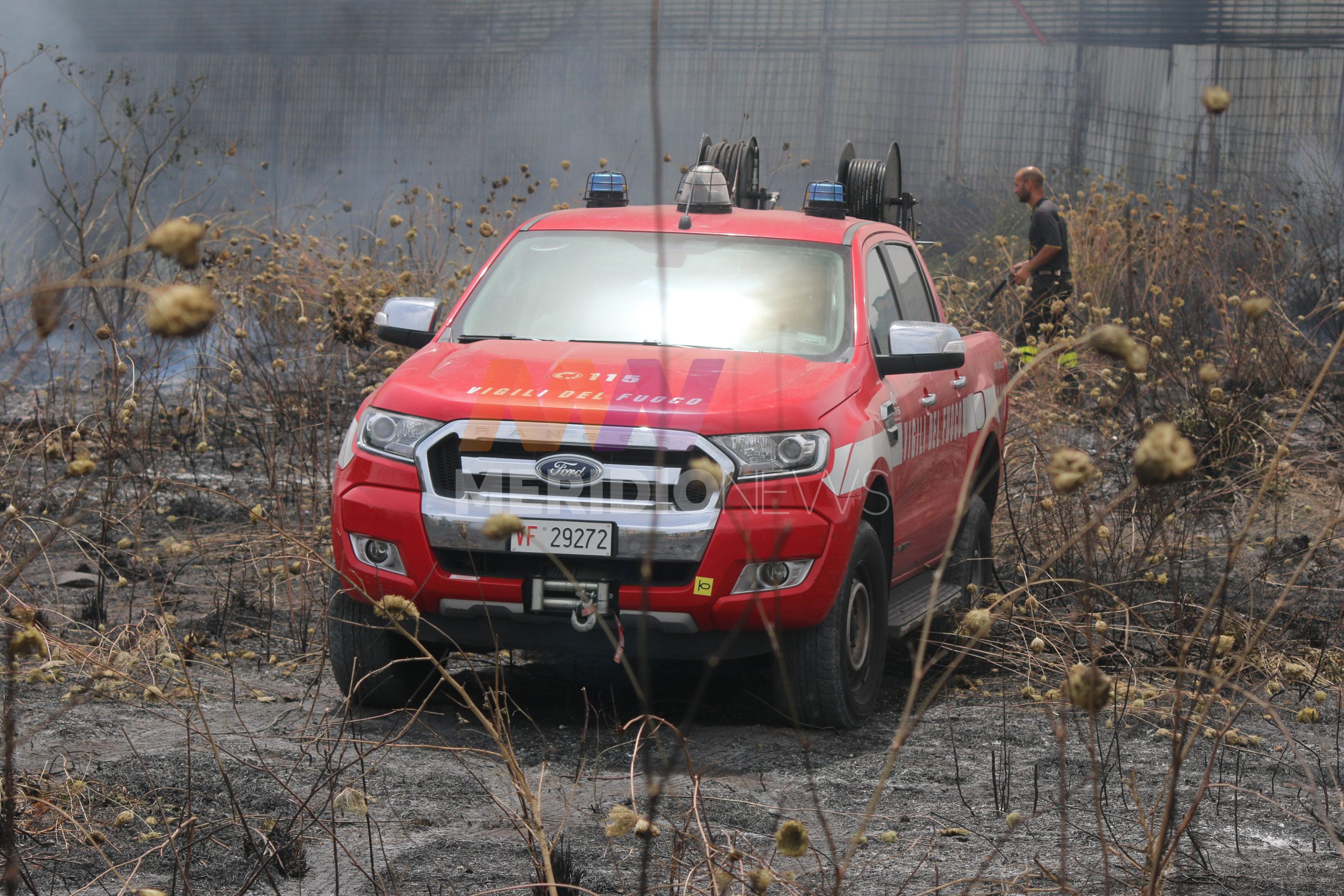 Sul posto sono intervenuti i vigili del fuoco e la polizia con diverse volanti. A preoccupare è la presenza di un deposito di mezzi che si trova adiacente al terreno e in cui sono custodite anche delle bombole di gpl. Al momento, comunque, la situazione è sotto controllo. Soltanto un furgone ha subito leggeri danni alla parte anteriore, con un la plastica di un parafango che si è sciolta.